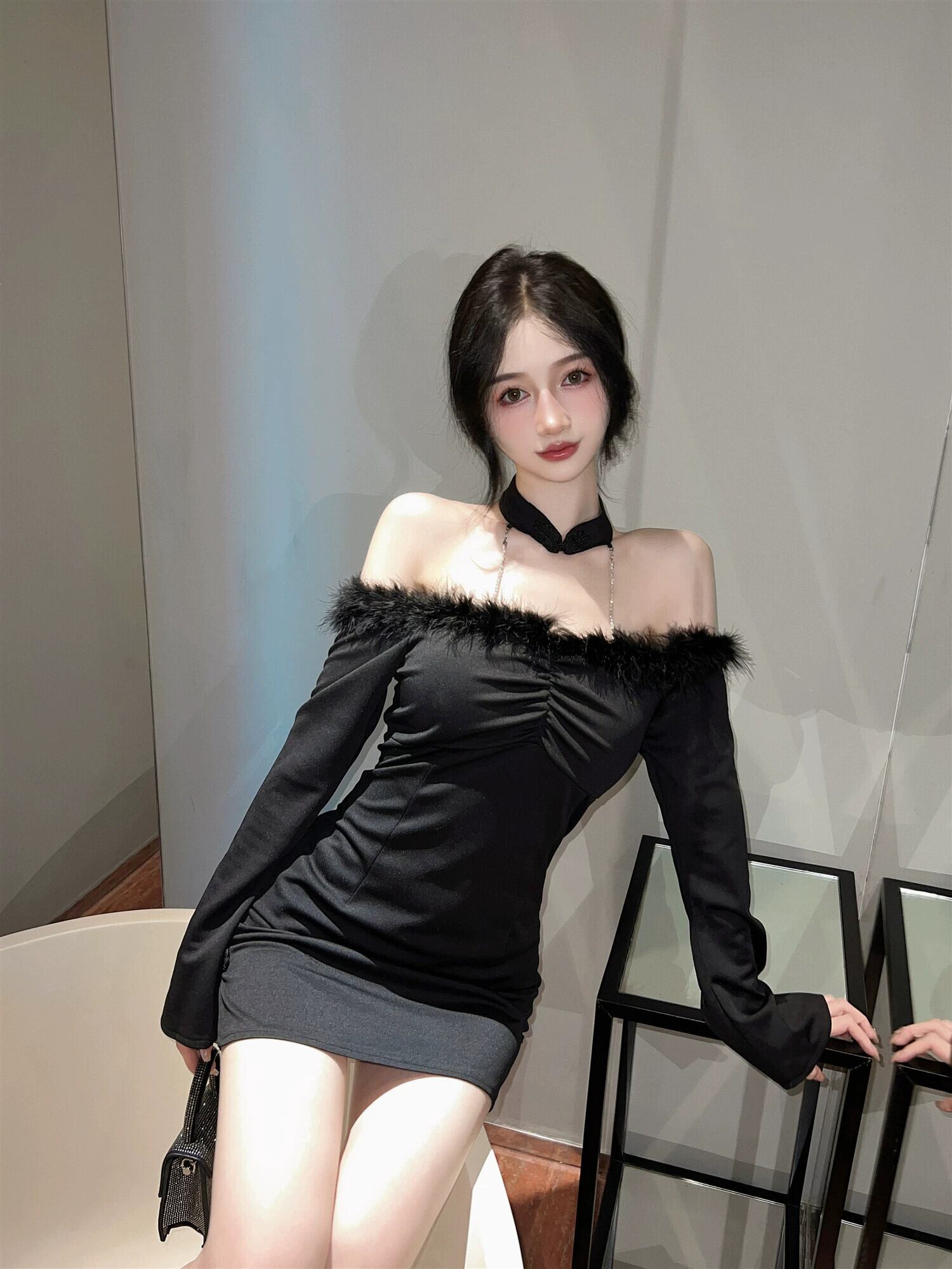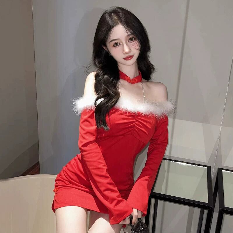 生放送女性アンカー pogenic クリスマスとコスチューム赤と白のセクシーなワンライン襟オフショルダー ホルター ドレス ホワイト レッド yeyij14862897620