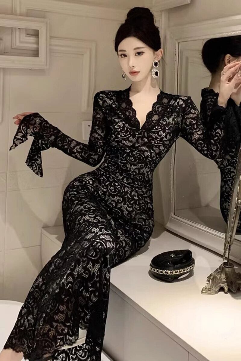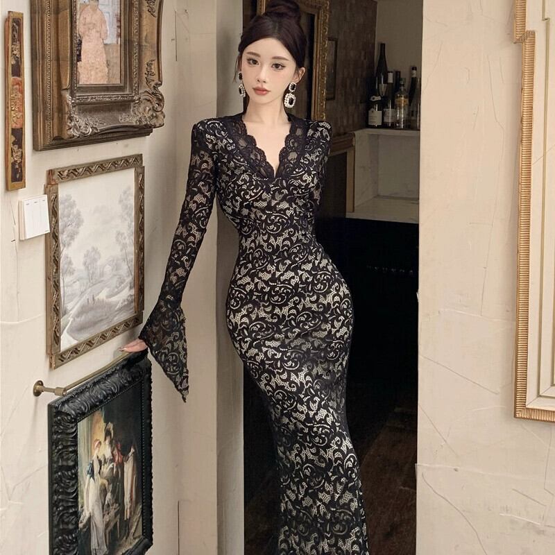 フランスの女性の 2023 秋の新しいスタイルのレディライクなライトドレスハイエンドパーティーロングレースドレス オータム 秋物 yeyij84378272969