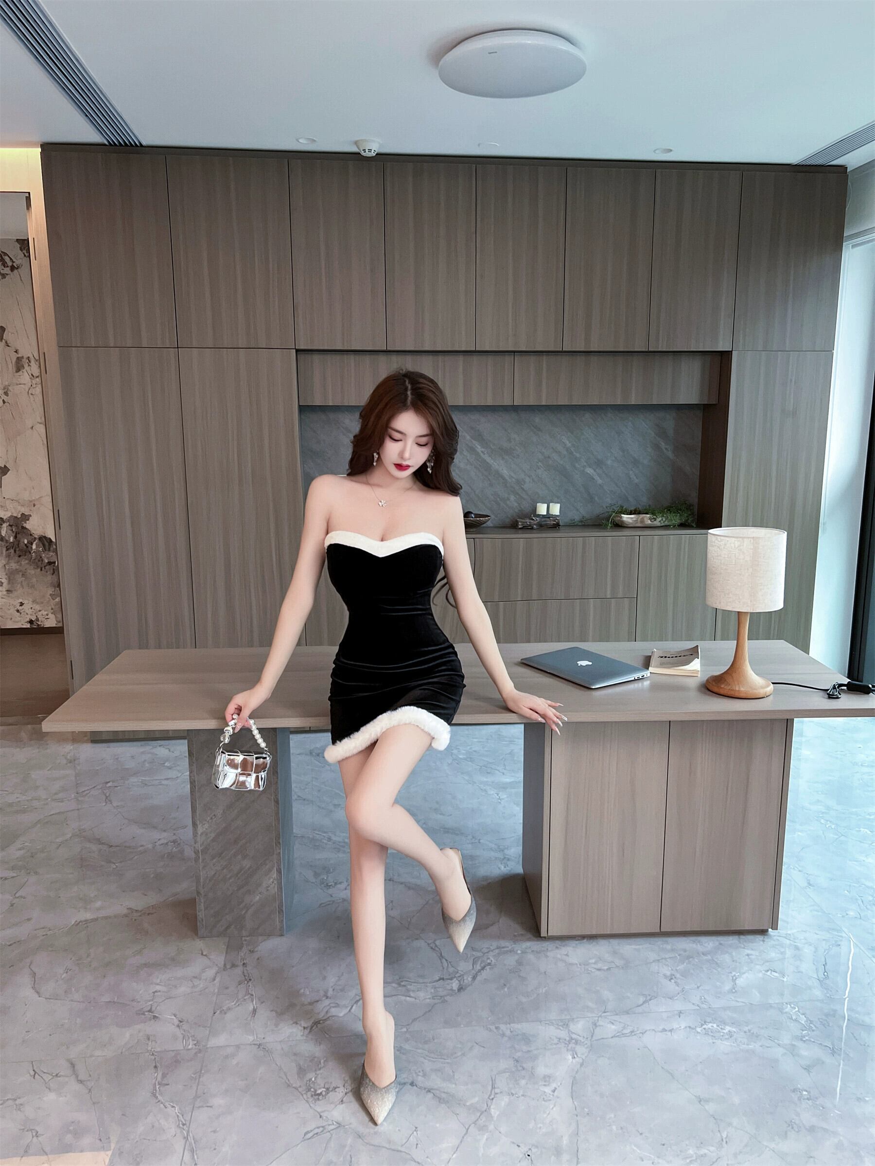 生放送の女性アンカーの服、ナイトショーのクリスマスシャツ、ヒップをカバーする赤いセクシーなチューブトップドレス レッド yeyij68661843795
