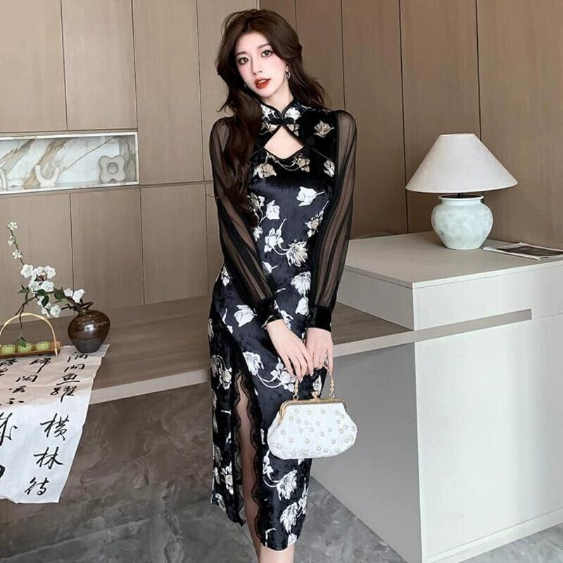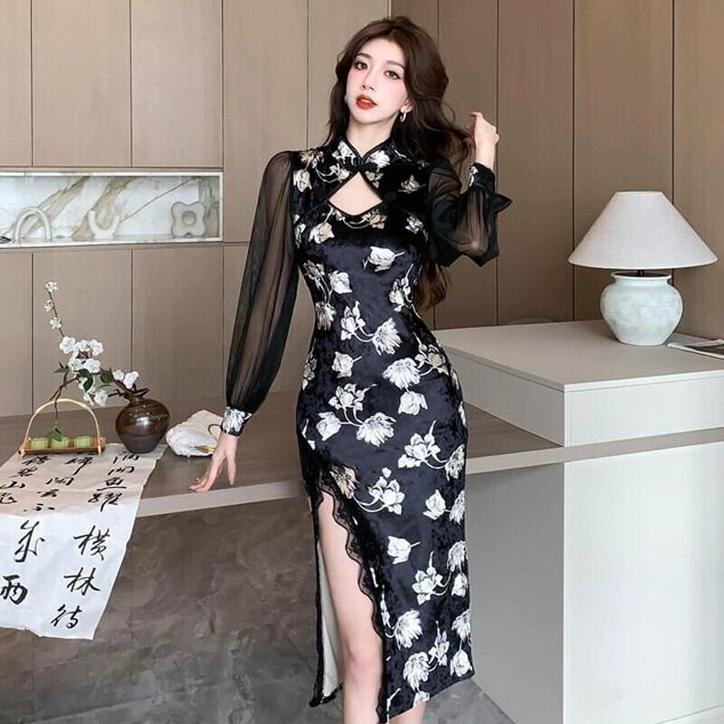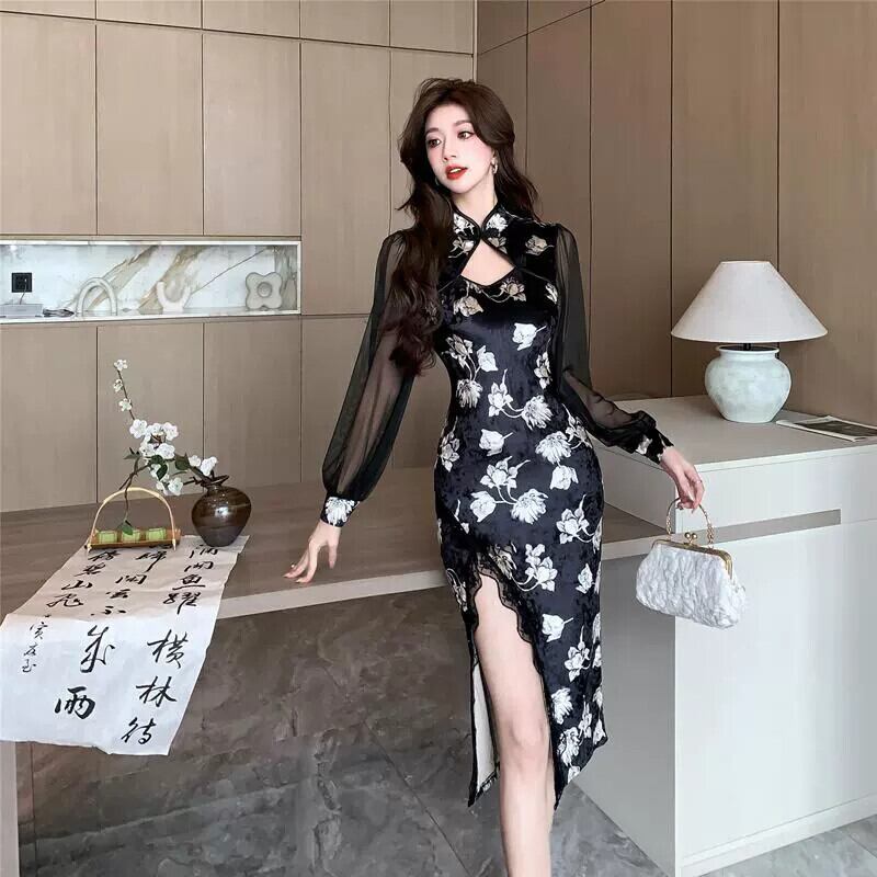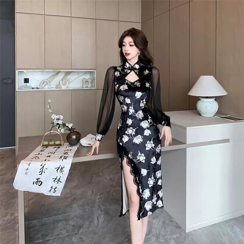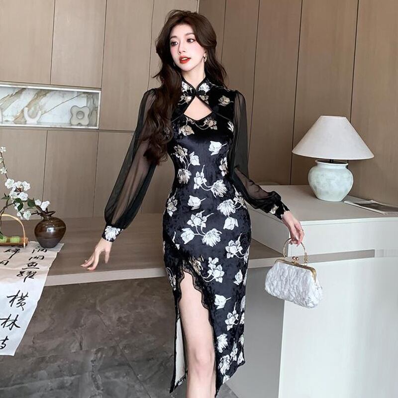 中国風のチャイナドレス新2023新しい秋服若いスタイルのセクシーな中空改良版の中国風ドレス オータム 秋物 yeyij92920912922