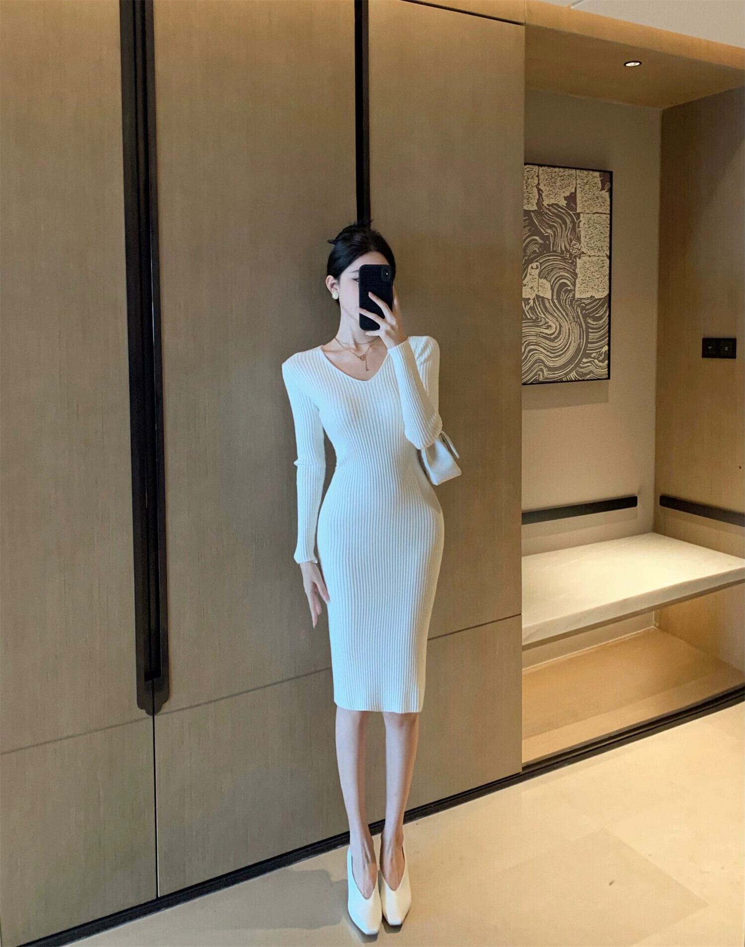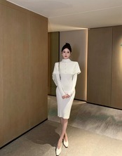 小さなドレス、高級社交界のスーツ、スタンドカラー、マントとショール、ミドル丈の長袖ニットドレスと組み合わせた2点セット ロング レッド yeyij67433731421