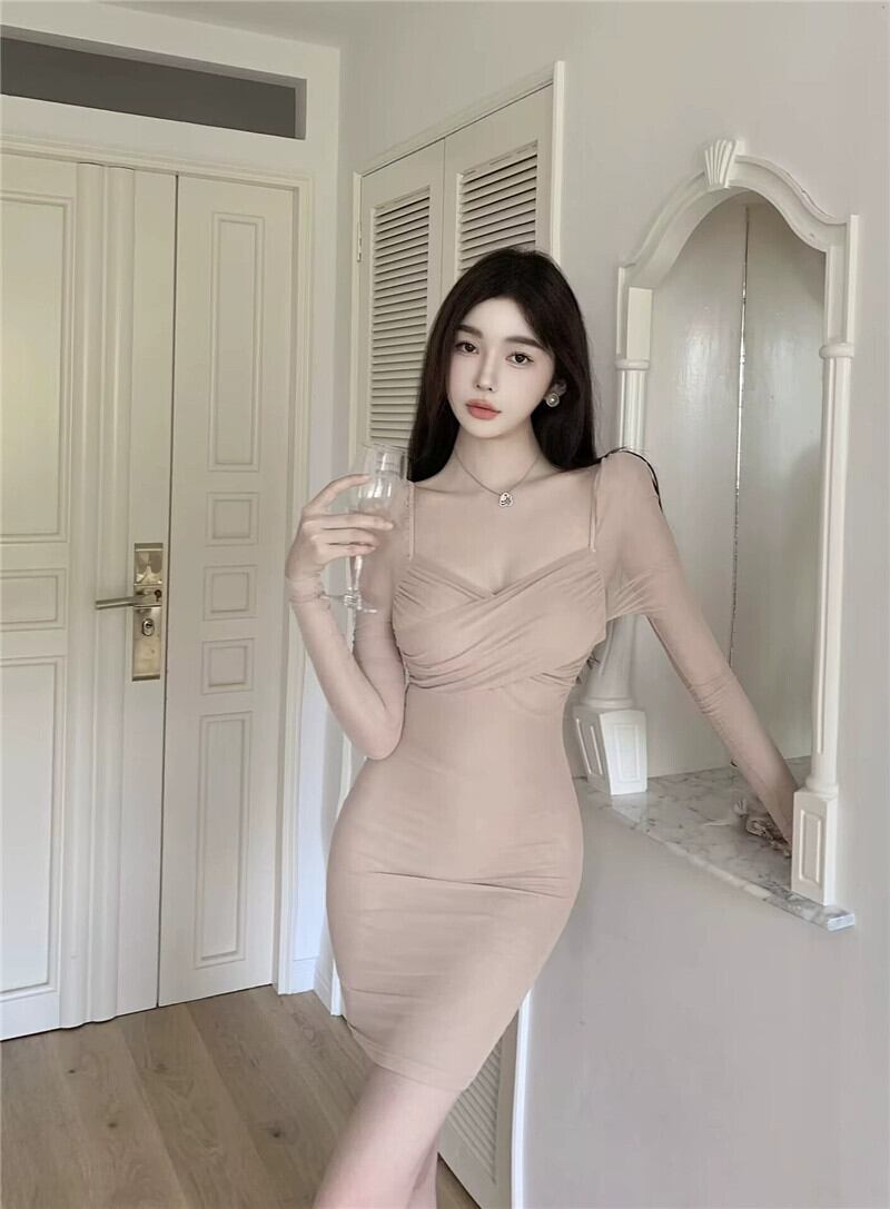 女性の 2023 秋の新しいスタイルの淑やかな気質純粋な欲望セクシーなクロススクエアネックメッシュヒップカバーボトリングドレス オータム 秋物 ピュア スクウェア yeyij92604369687