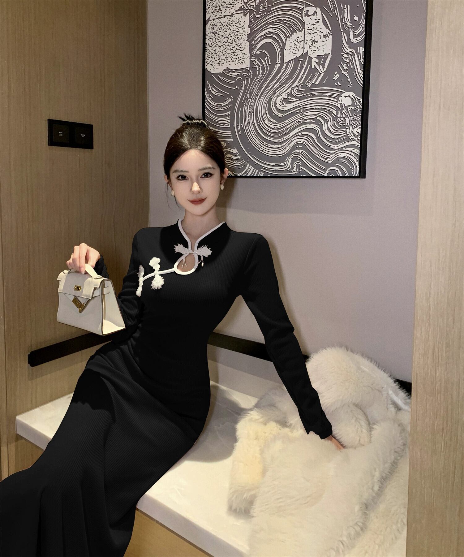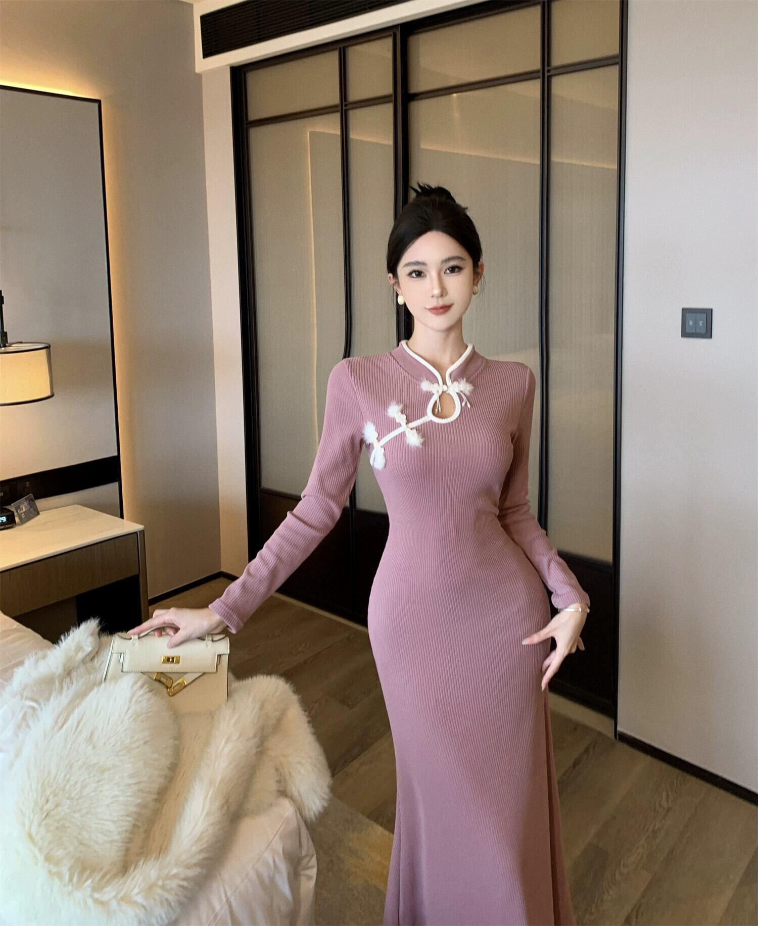 チャイナドレスの改良版女性の新しい中国風の若いスタイルのハイエンドのレトロな中国風のデイリーミドル丈ドレス yeyij28847041792