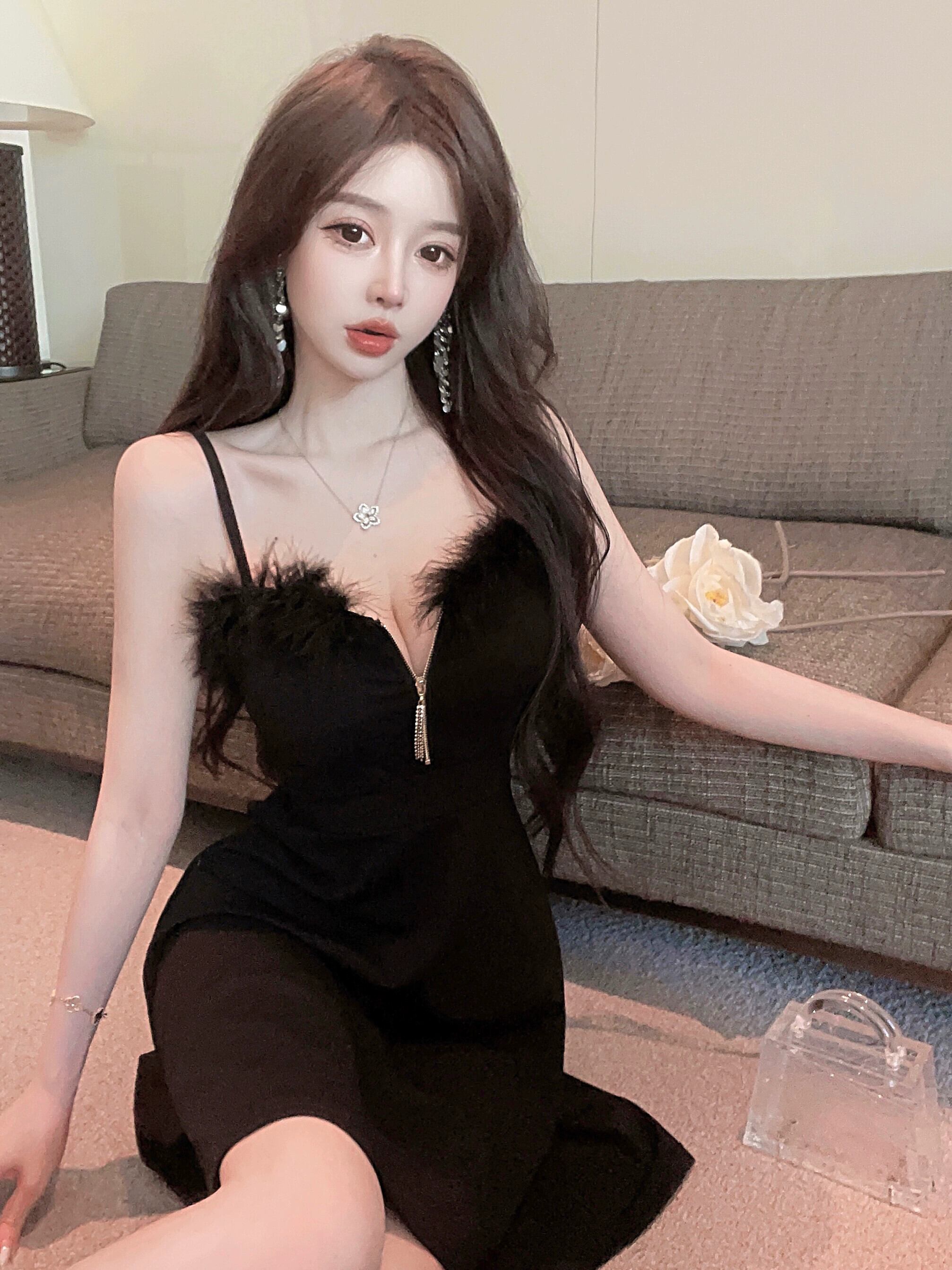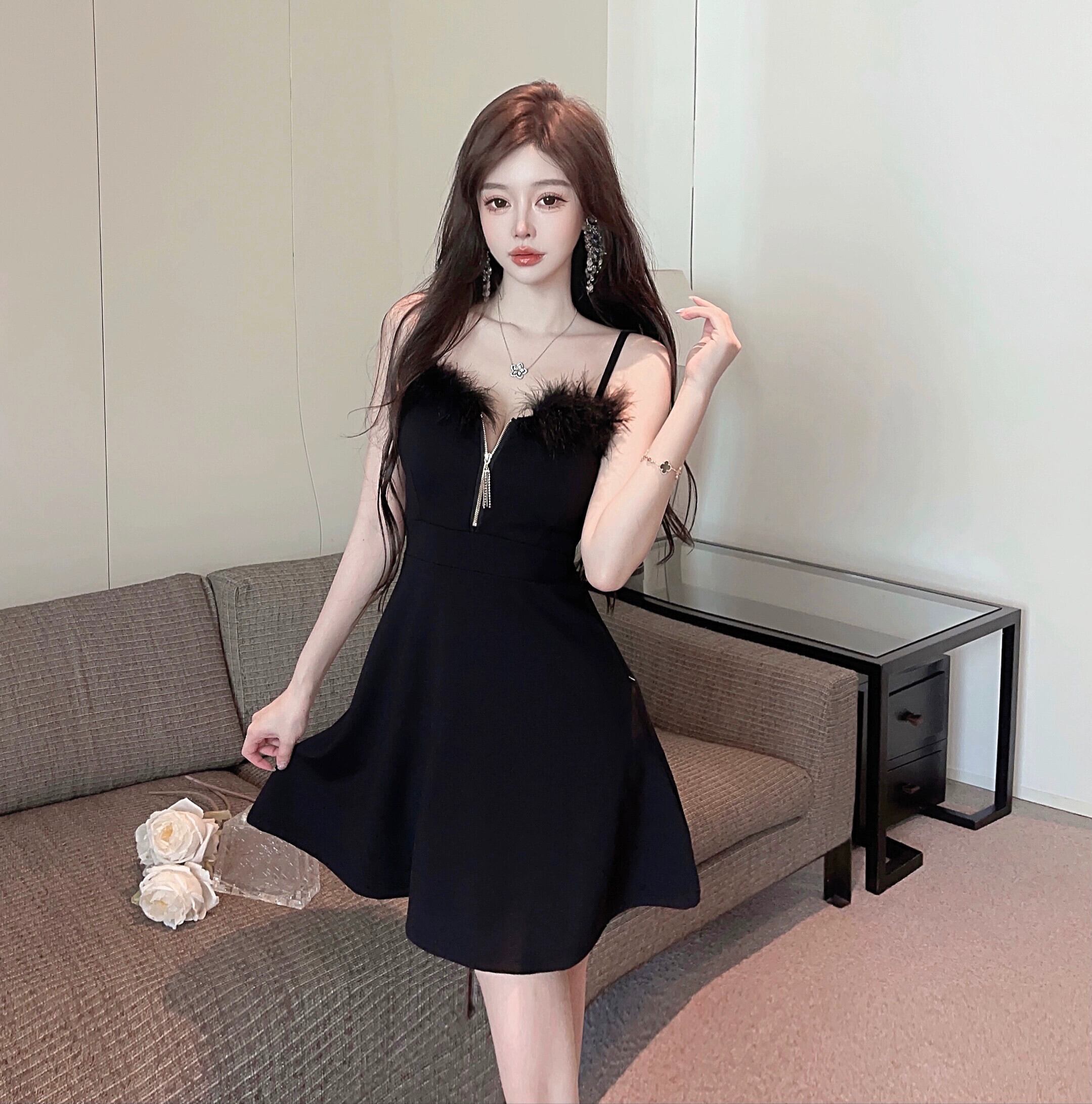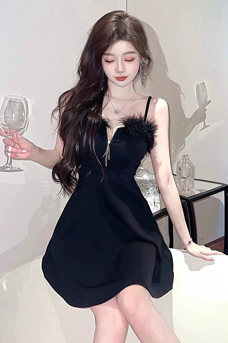 ナイトクラブの女性のナイトクラブの作業服、技術者の作業服、毛皮で覆われたセクシーなウエスト痩身サスペンダードレス yeyij46252649214