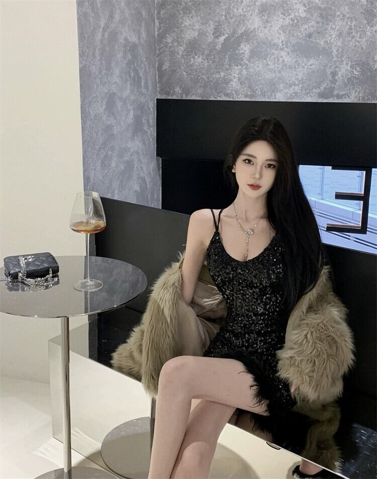 バンケットイブニングドレス、ハイエンド、ラグジュアリー、ニッチ、小柄、セクシーなバックレスストラップスパンコールサスペンダードレス yeyij34170918739