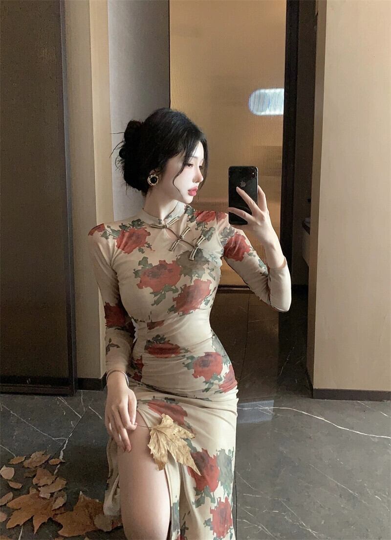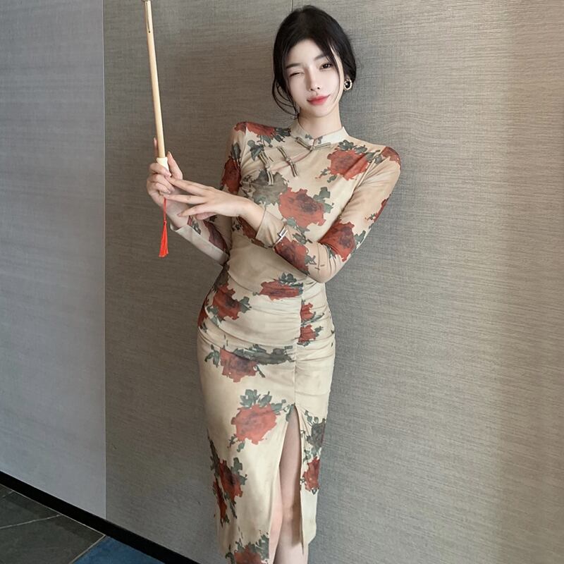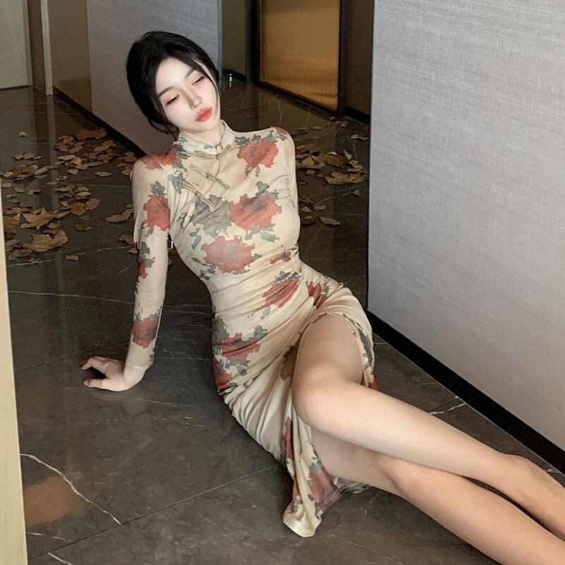 生放送服女性アンカー pogenic ハイエンド若いセクシーなメッシュレトロ改良版チャイナドレス yeyij92209032682