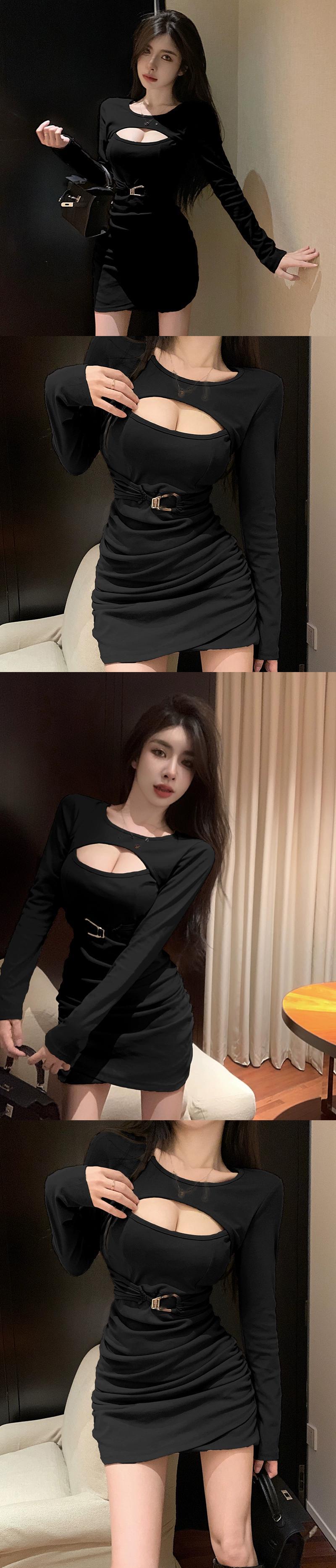 生放送の女性アンカーのポージェニックな服、高級な純粋な欲望のネクタイのセクシーな中空胸の痩身ボトムドレス ピュア yeyij22222605004