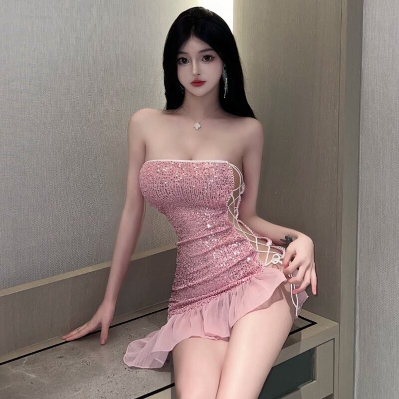 ナイトクラブの女性のナイトクラブバーディスコ服輝くスパンコールクロスストラップセクシーなフィッシュテールチューブトップドレス yeyij99963422744