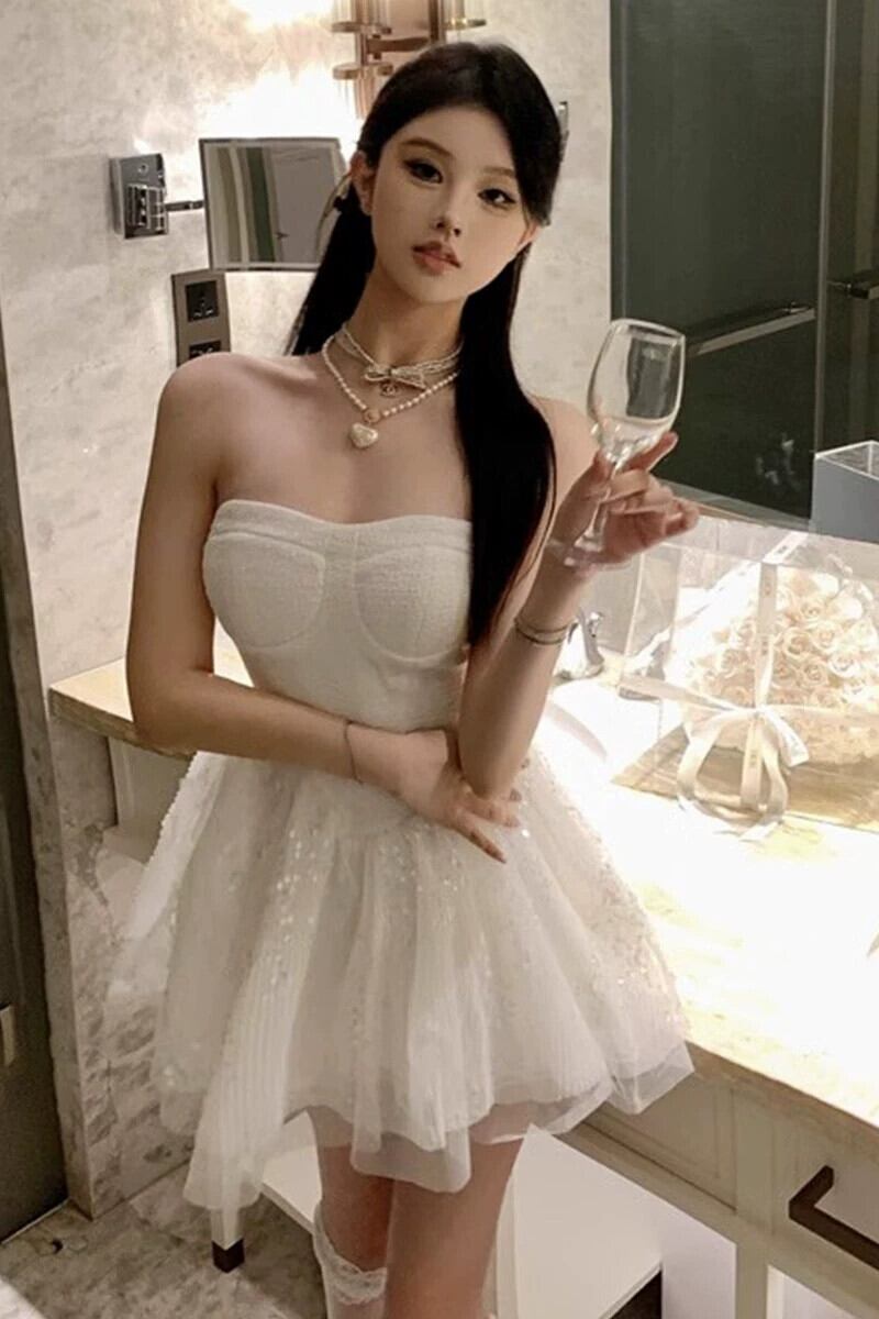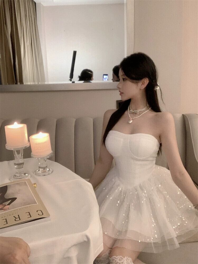 誕生日パーティーハイエンドスカートミニドレススーパーフェアリーフレンチ大人プリンセススカートチュチュスカートセクシーなチューブトップドレス パニエ ペチコート yeyij3470256624