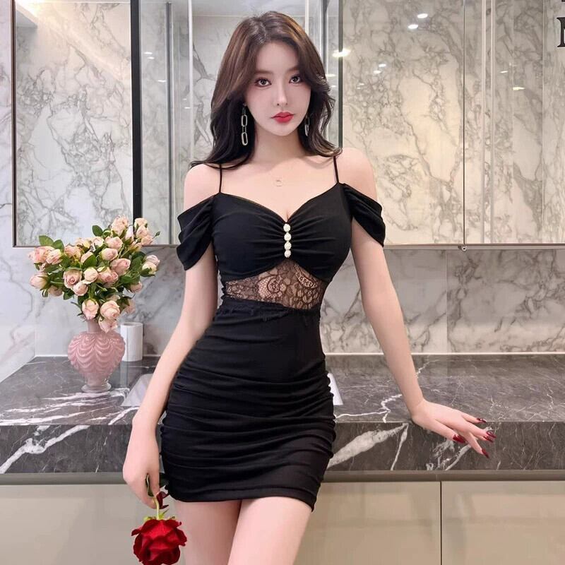ナイトクラブの女性のナイトクラブの作業服、作業服、技術者作業服、レースステッチ、セクシーなオフショルダーサスペンダードレス yeyij64600110032