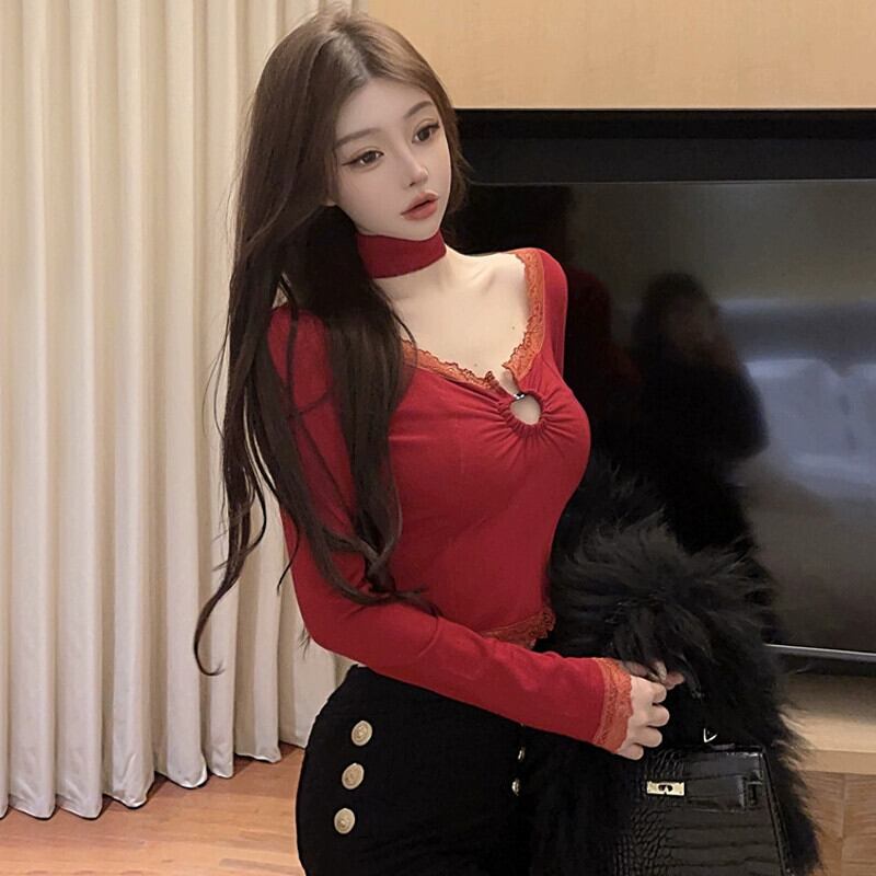 生放送の女性アンカーのポージェニックな服、高級な純粋な欲望スタイルのTシャツ、セクシーな中空レースの底ホルタートップ ピュア yeyij137010606