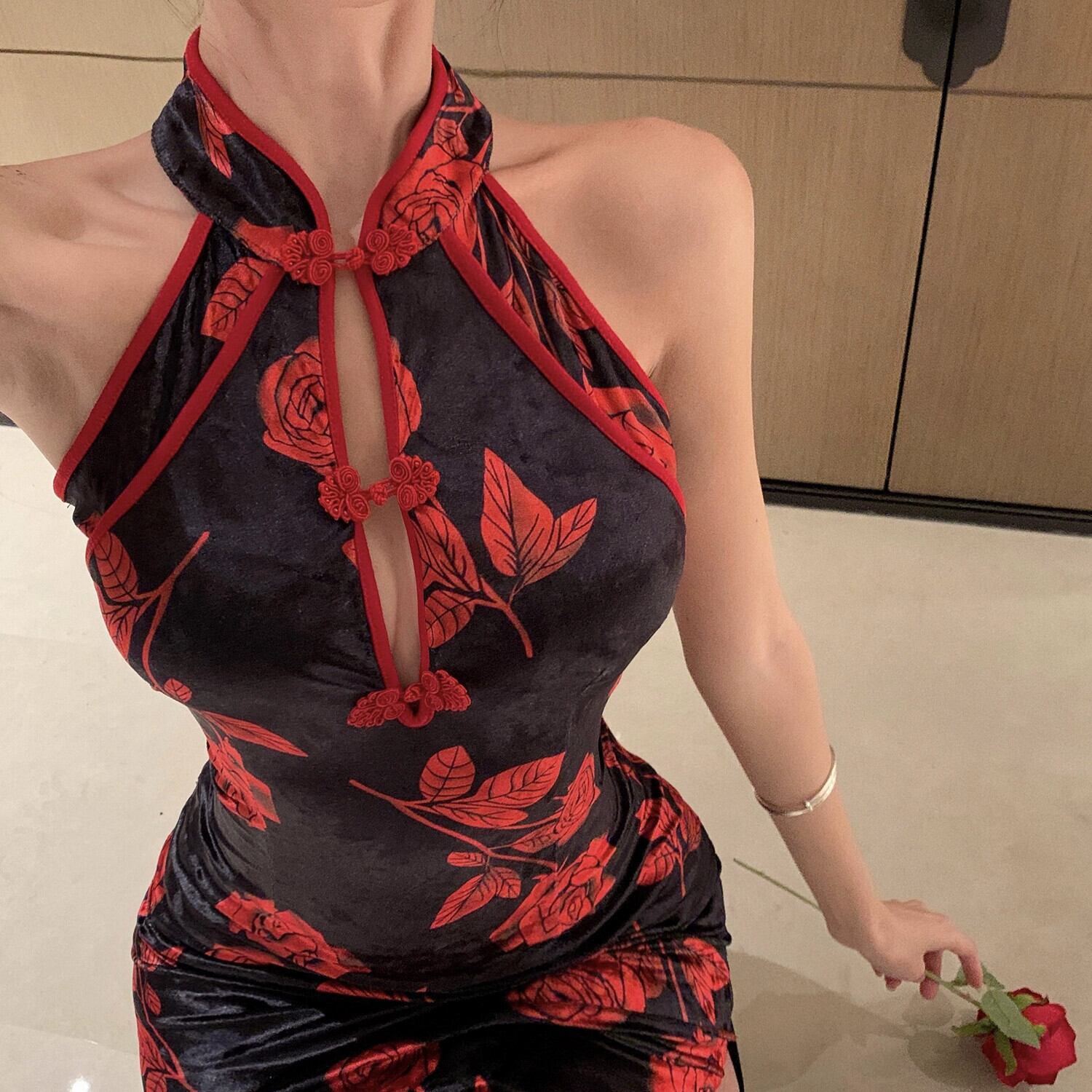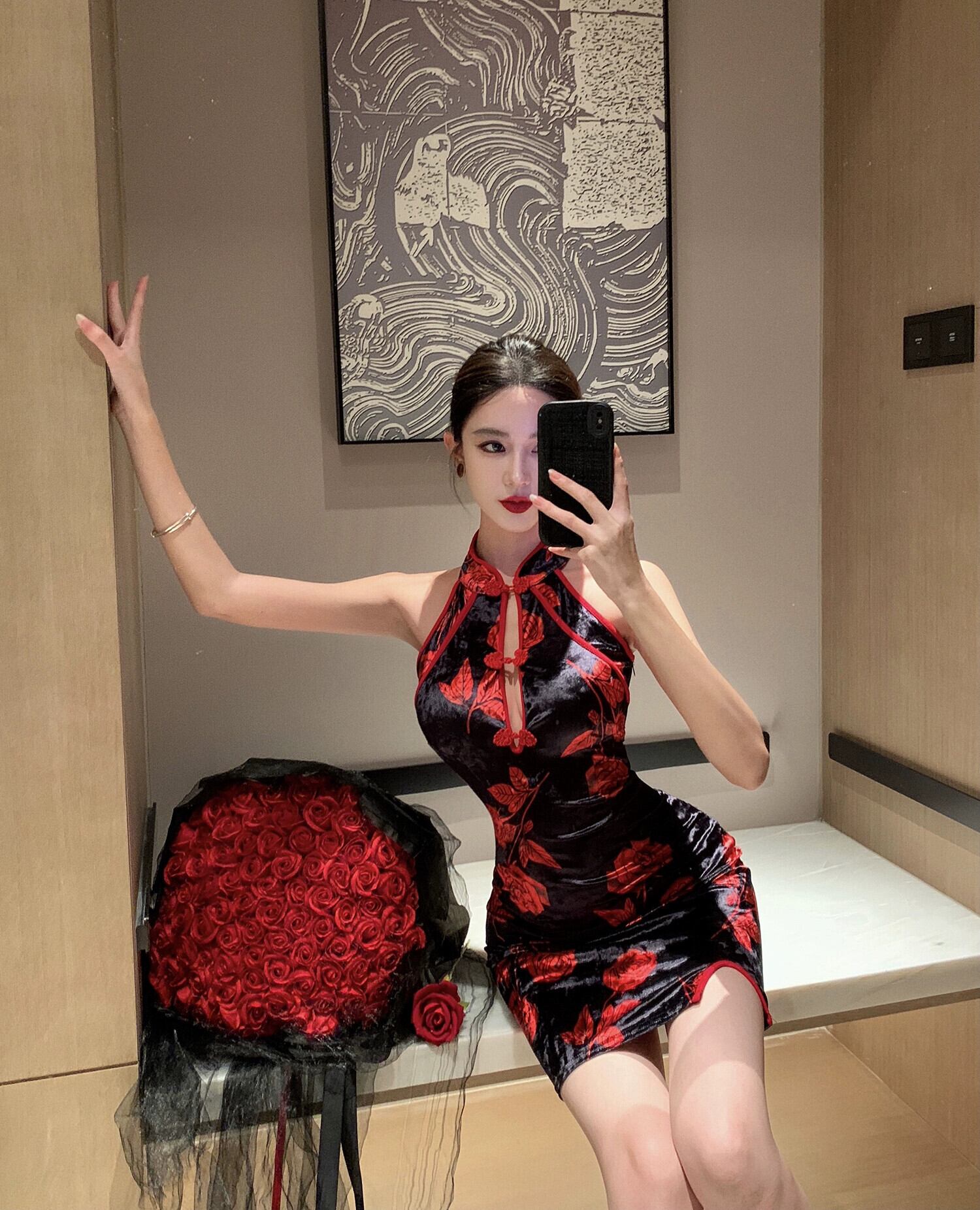 生放送服女性アンカー pogenic ハイエンド若いセクシーなショート ゴールド ベルベット修正チャイナ ドレス yeyij37118374842