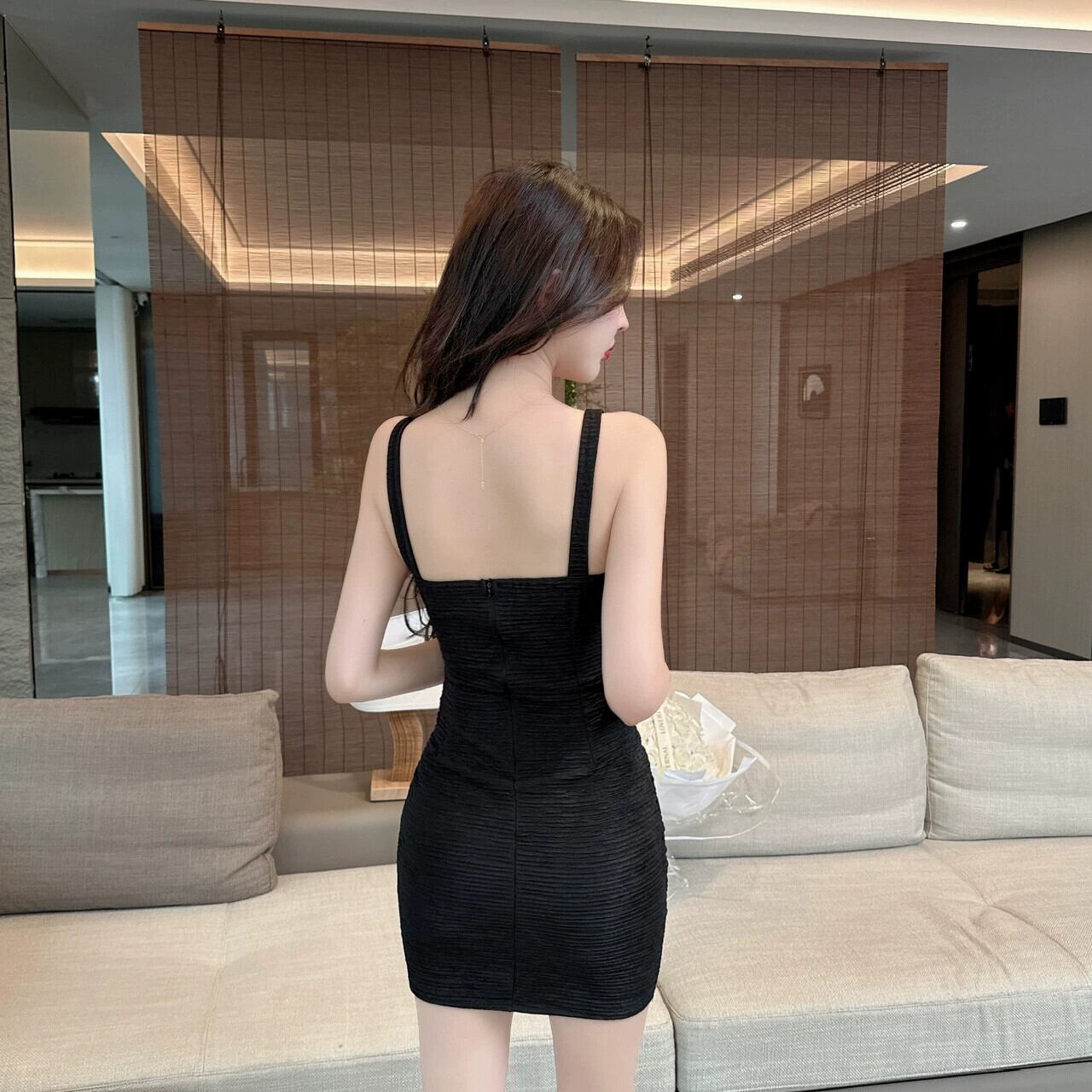 ナイトクラブの女性のナイトクラブの作業服、技術者の作業服、ファッショナブルでセクシーな V ネック スリム サスペンダー ドレス Vネック yeyij33418433005