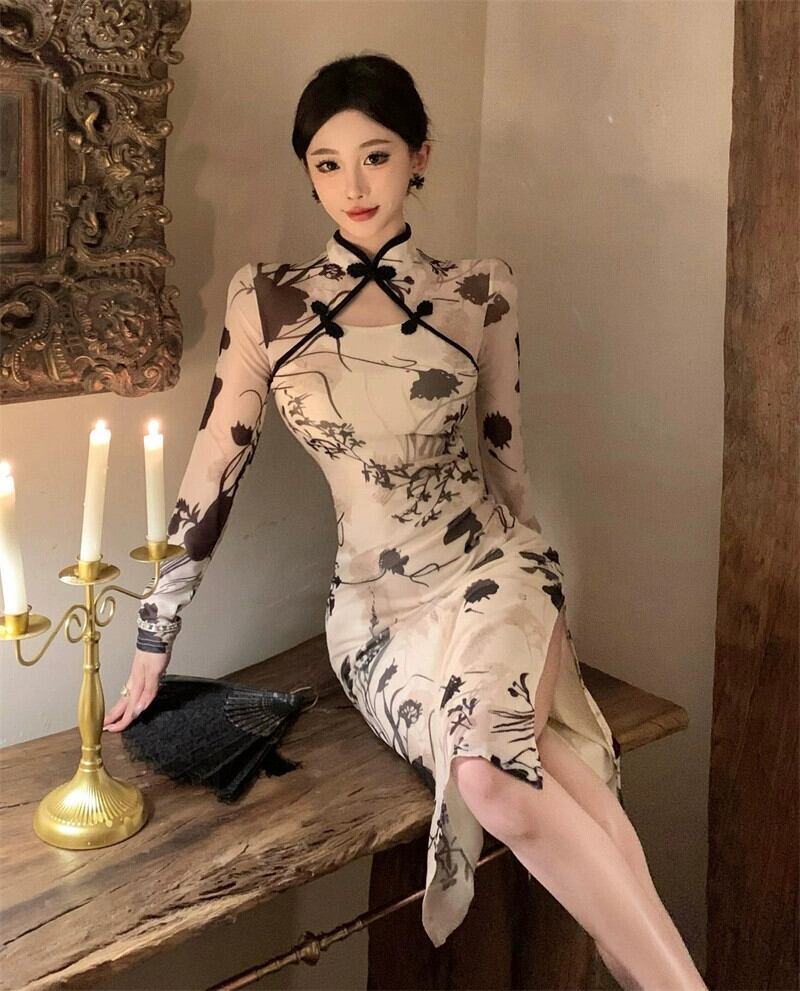 生放送服女性アンカー pogenic ハイエンドの若いスタイルのセクシーな中空ミッドレングス修正されたチャイナ ドレス yeyij32151299908