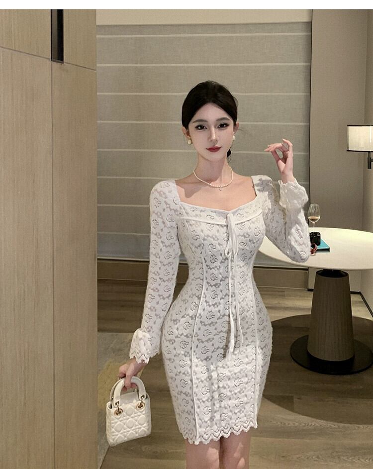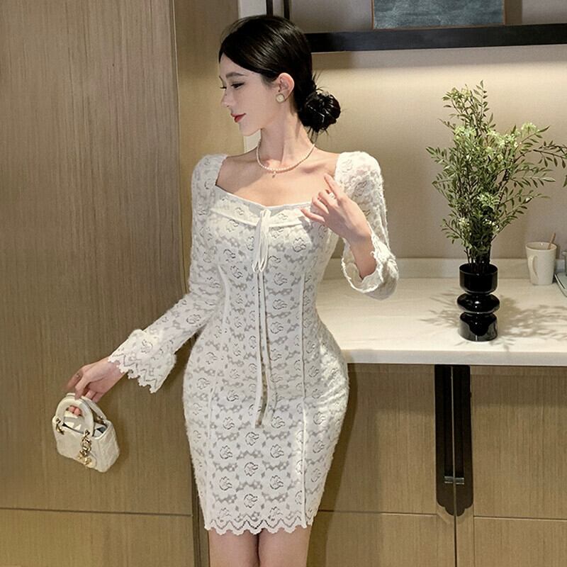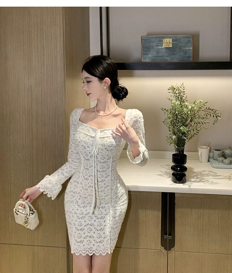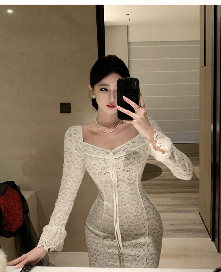 成熟したロイヤルシスタードレス女性 2024 フレンチフレグランススタイルレディ気質セクシーなスクエアネックレース底スカート スクウェア yeyij65438847692