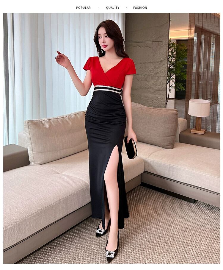 セレブのイブニングドレスの女性 2024 新しいナイトクラブの女性のダイヤモンドがちりばめられたハイスリットロングスカートセクシーなローカット V ネックドレス Vネック yeyij70671673048