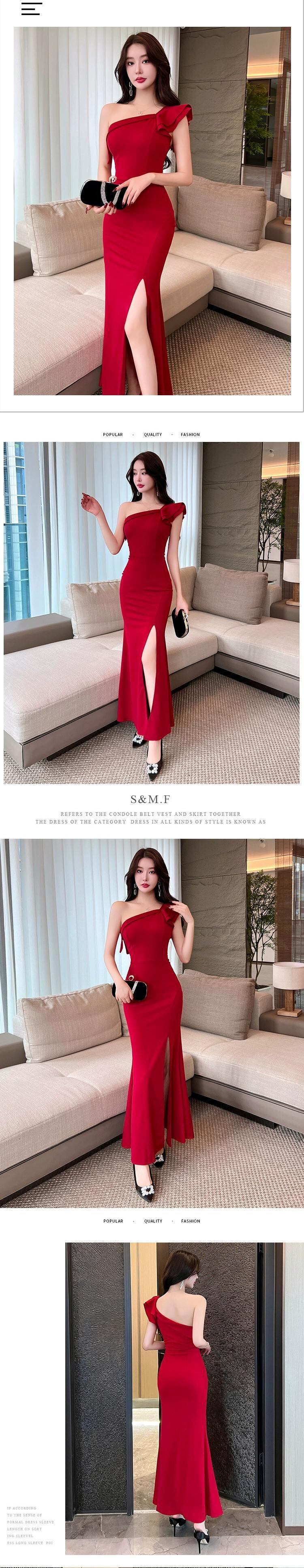 セクシーなイブニングドレス、ロングドレス、女性の年次パーティー宴会、西洋風女神スタイル、セクシーな斜め襟スリットロングドレス yeyij60999184210