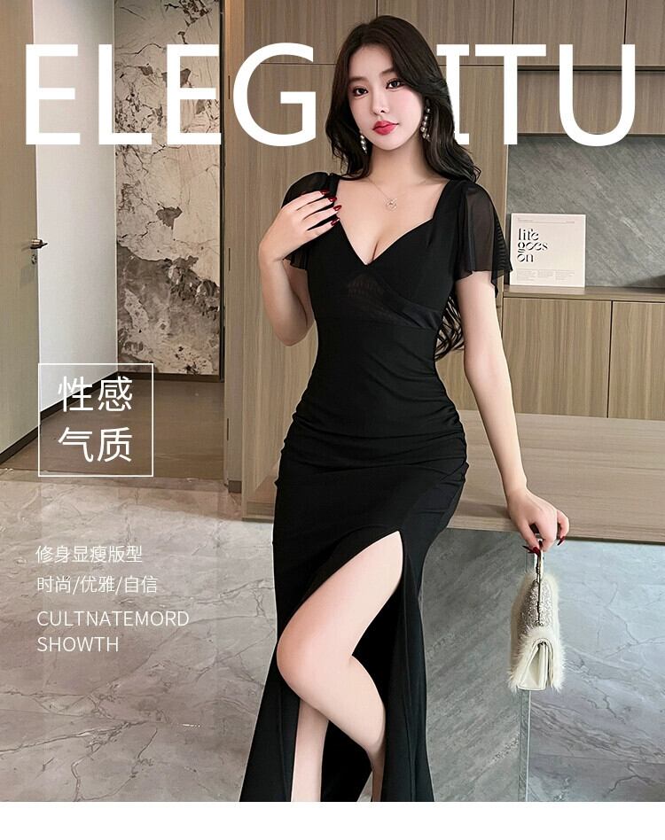 セレブイブニングドレス女性 2024 ナイトクラブ女性のロングスカートナイトクラブセクシーな V ネックメッシュスプライシングドレス Vネック yeyij75592612679