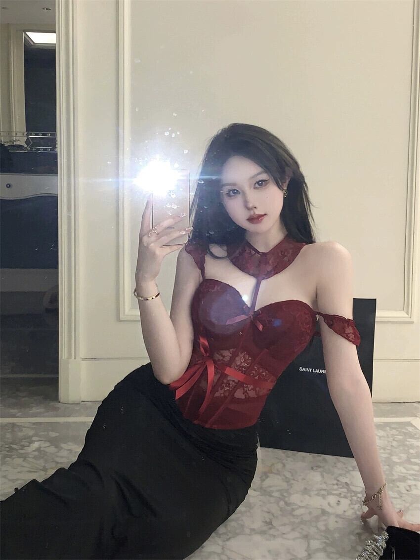 Pogenic 服生放送女性アンカー、胸パッド付き高級セクシーレースキャミソール、美しい背中、女性用インナートップ yeyij88539759187