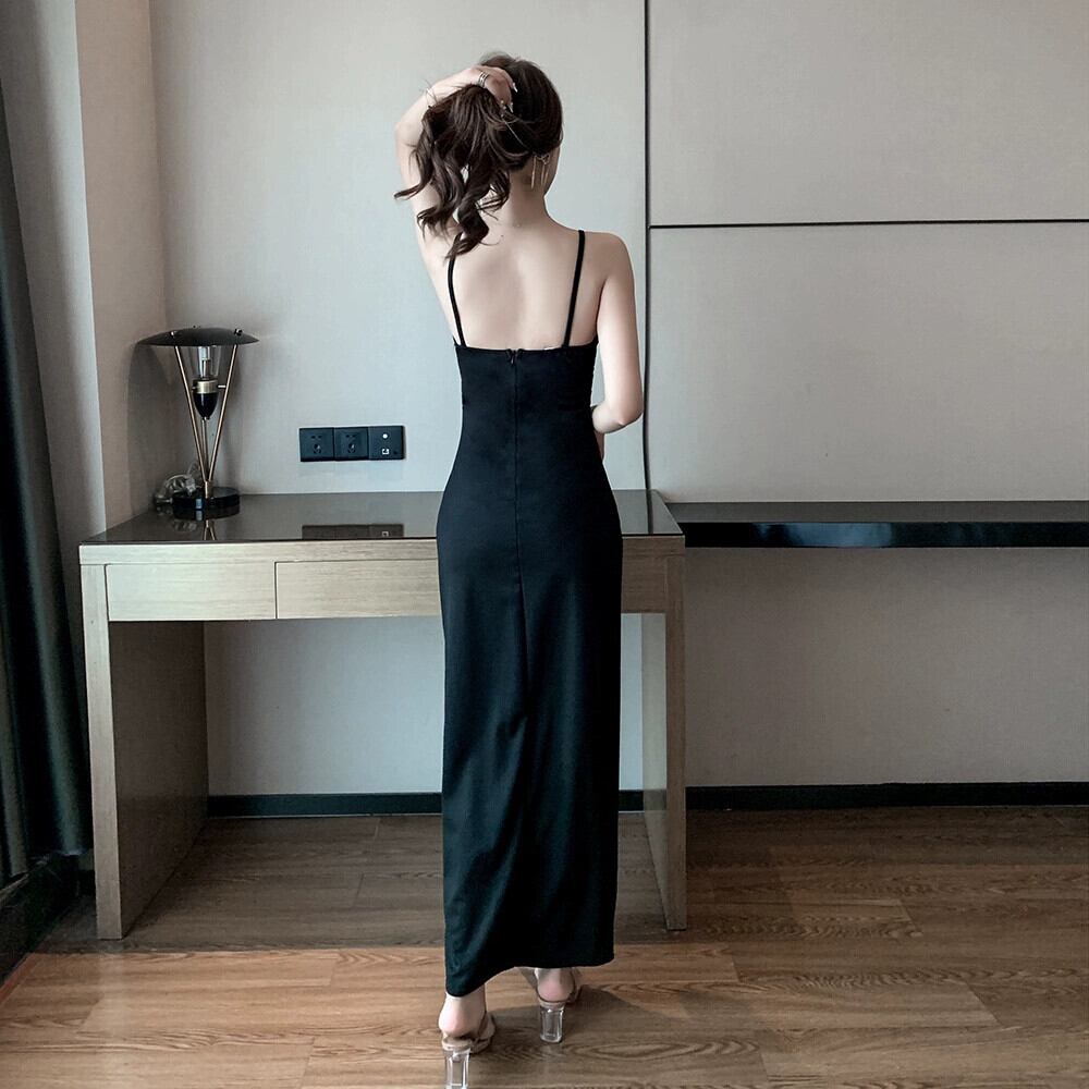 年次総会イブニングドレスロングスカート女性のナイトクラブ宴会西洋スタイルのセクシーなローカットディープ V ネックロングサスペンダードレス Vネック yeyij90632155119