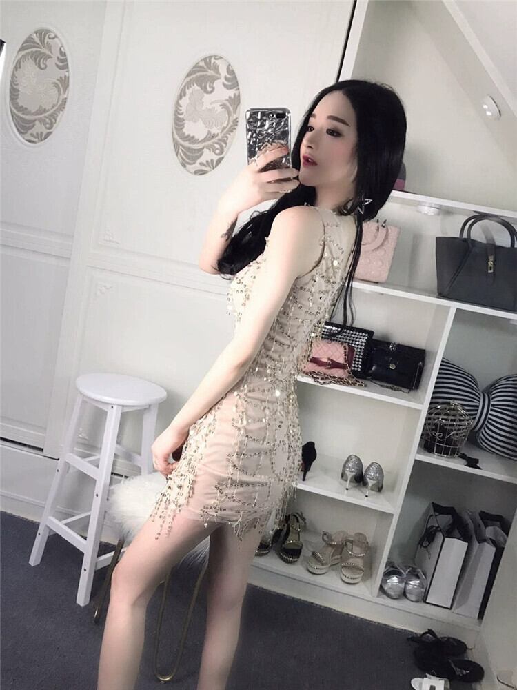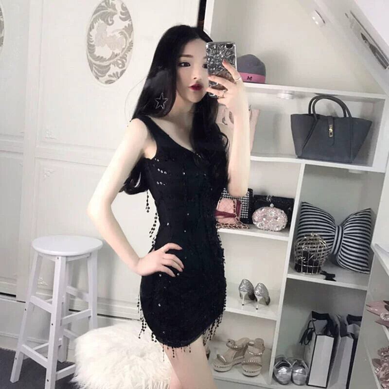 ナイトクラブの女性のバーディスコスカートオーバーオール電話スパンコールセクシーなディープ V ネックノースリーブヒップカバードレス Vネック yeyij32371842449