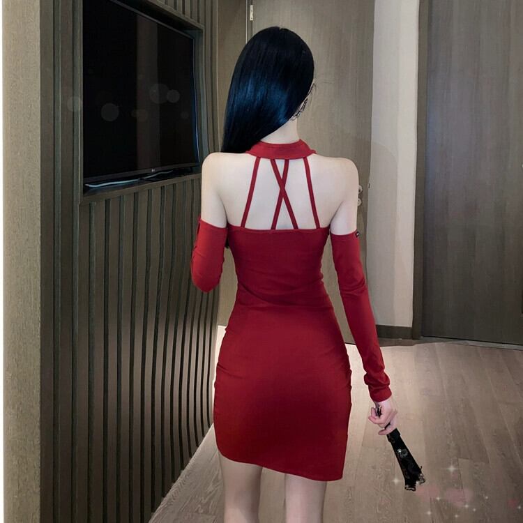 アンカー服女性中国風クリスマス赤いチャイナ ドレスの若いセクシーな背中の開いた修正バージョン レッド yeyij6471083662