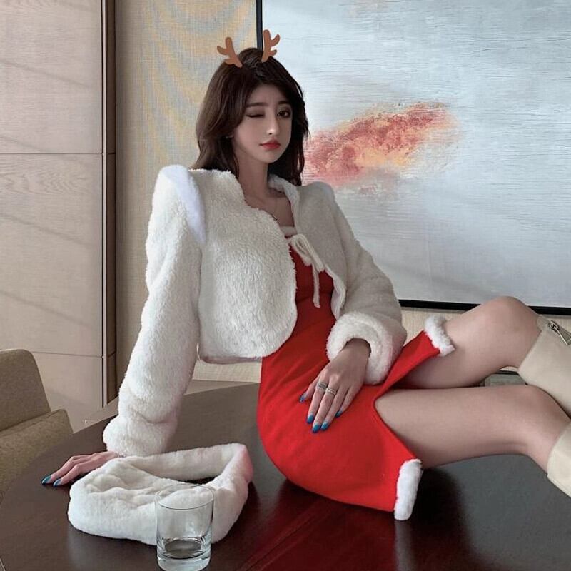 クリスマスリトルドレス、赤いイヤーズパーティー服、ナイトクラブスーツ、アンカーコスチューム、女性の甘くてセクシーなサスペンダードレス レッド 大人ガーリー スウィート キュート カジュアル yeyij70948999239