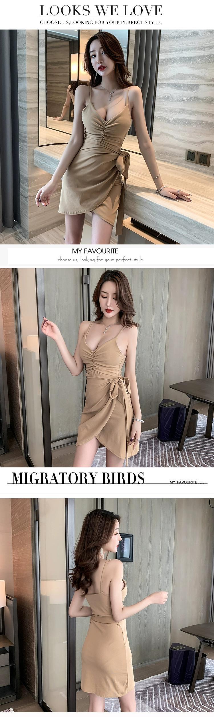 ナイトクラブ作業服店ローカットディープ V ネックレースアップウエスト痩身ヒップカバーサスペンダースカートナイトクラブセクシーなドレス Vネック yeyij21008096496