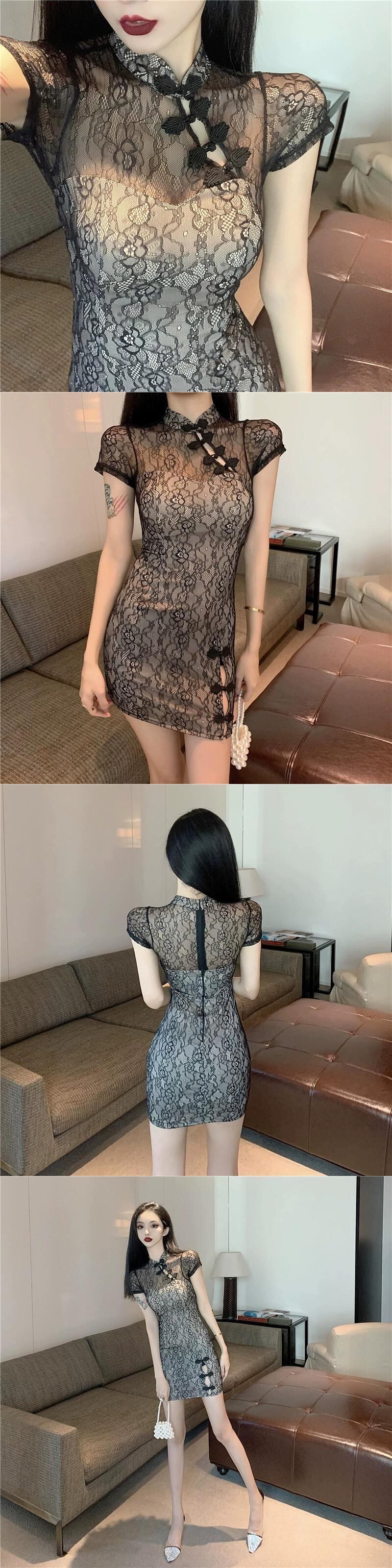 レースチャイナドレスヤングアンカー服改良版セクシースリットショートタイトヒップドレス yeyij54979802745