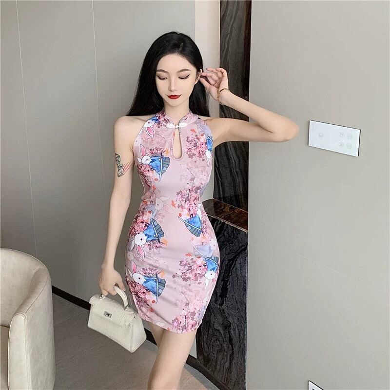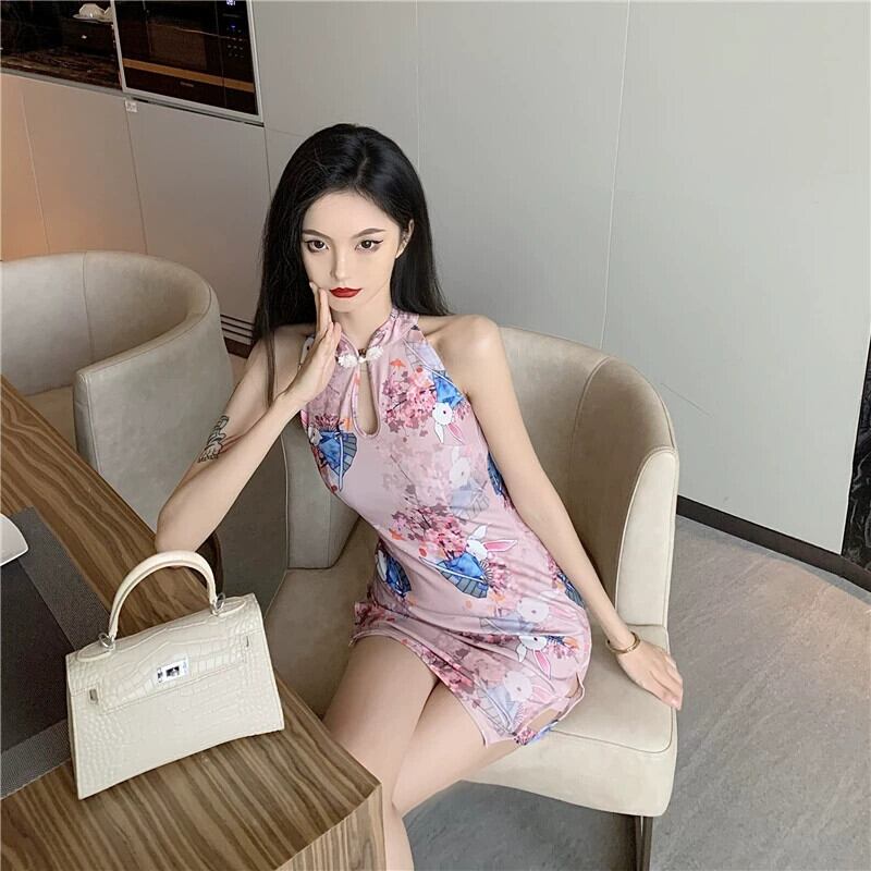 アンカー服女性の夏のナイトクラブセクシーな若いヒップカバースリットショートチャイナドレス改良版 サマー 夏物 yeyij53283914902