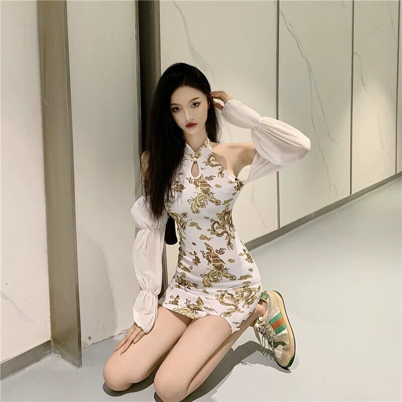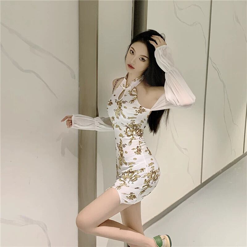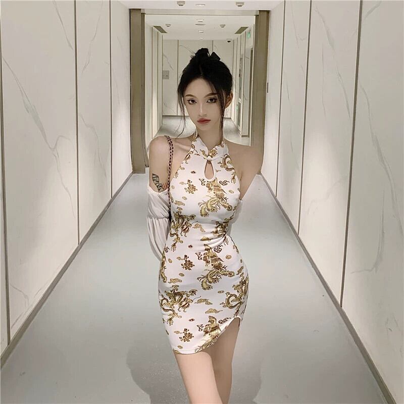 生放送服女性アンカー服 pogenic ハイエンド中国風のセクシーな背中の開いたホルターネック修正されたチャイナドレス yeyij90349756701
