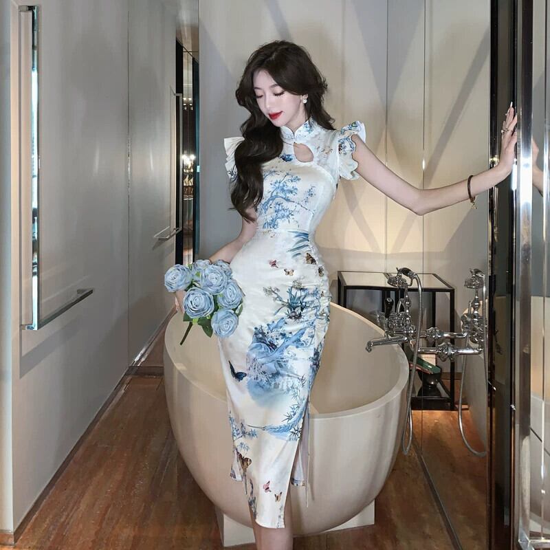 チャイナドレス、ハイエンドライトラグジュアリー、ニッチスモールドレス、パーティー気質、中国風、小さなフライングスリーブ、ミドル丈ドレス yeyij66437349978