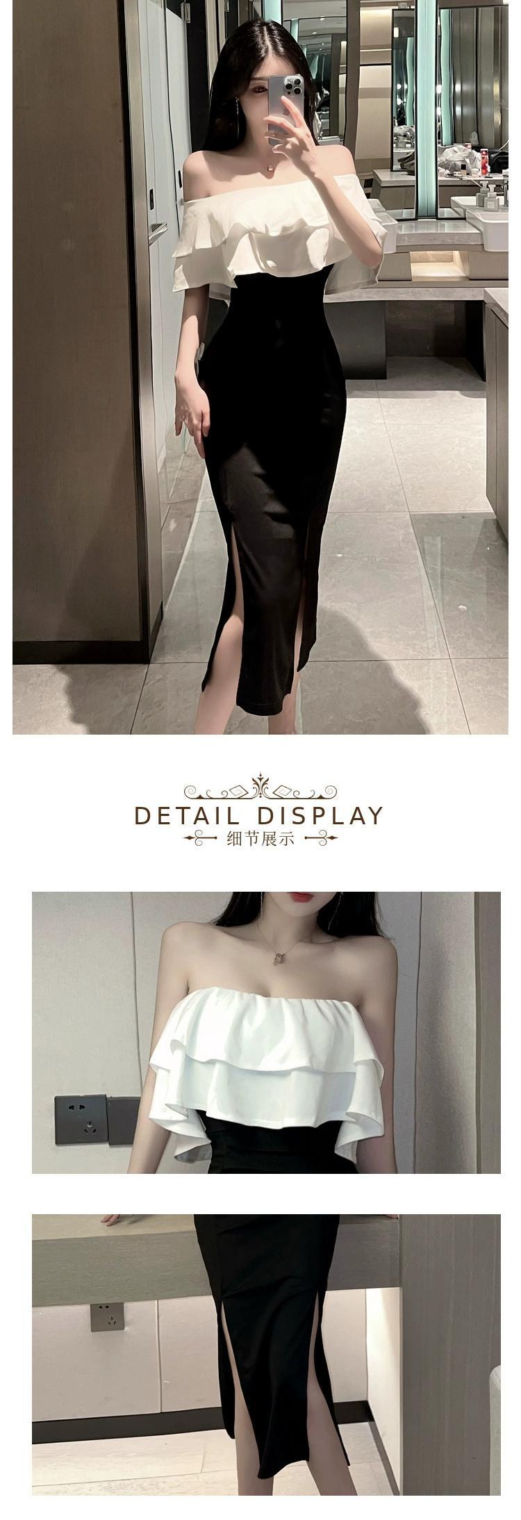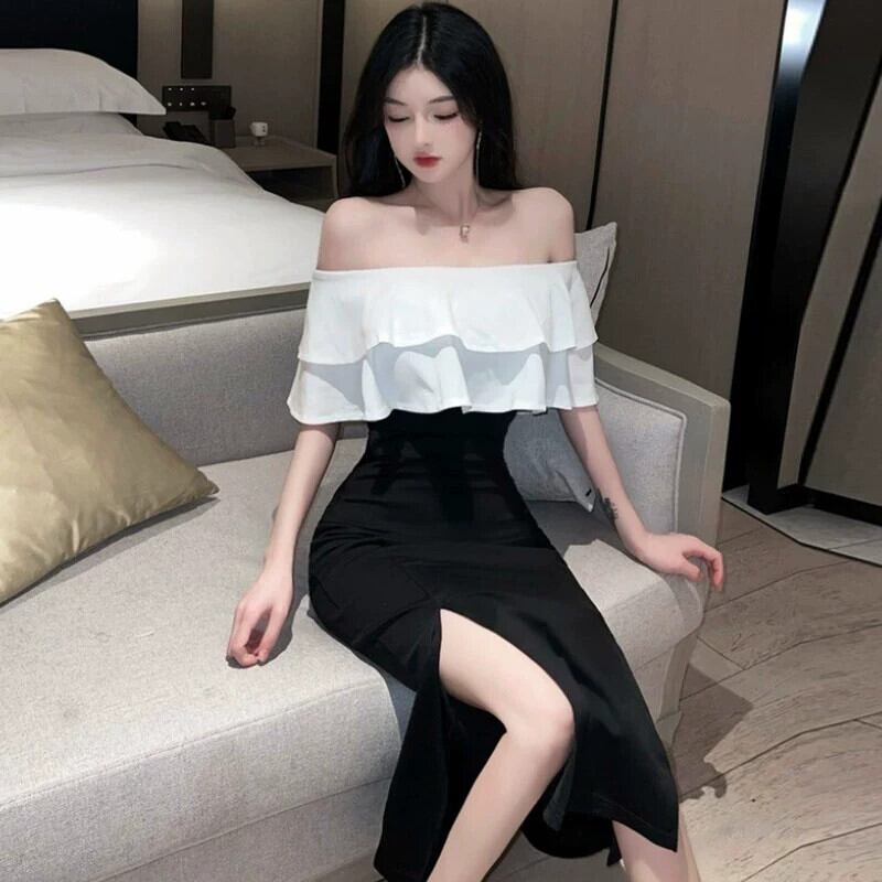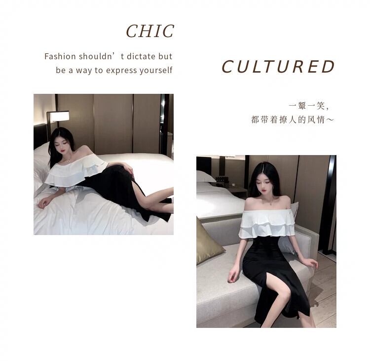 フレンチイブニングドレスロングドレスナイトクラブ女性の宴会気質スリムセクシーなフリルワンショルダードレス yeyij1983023801
