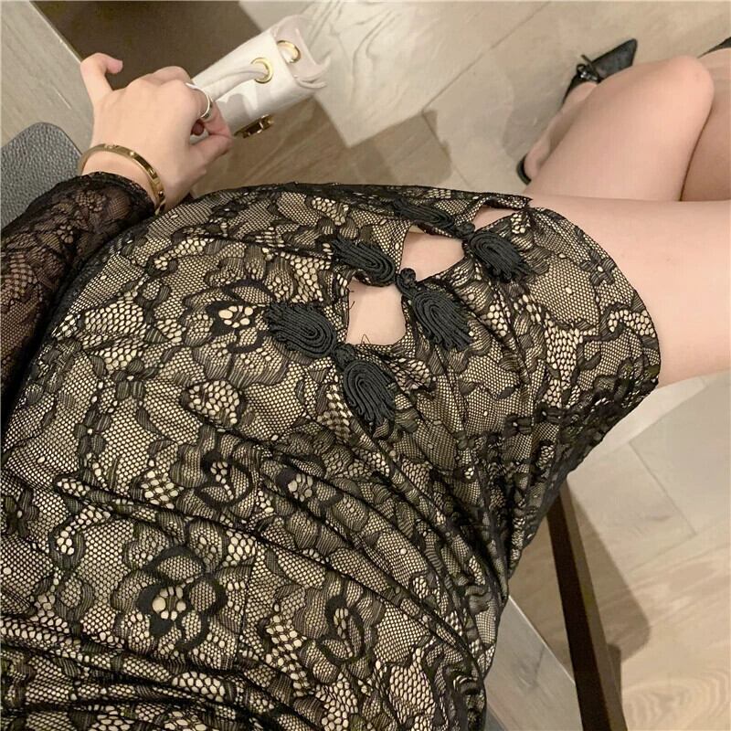 2023 春の新スタイル女性インターネット有名人アンカー若いセクシーな短いヒップカバーレース改良されたチャイナドレス ショート スプリング 春物 yeyij26418361197