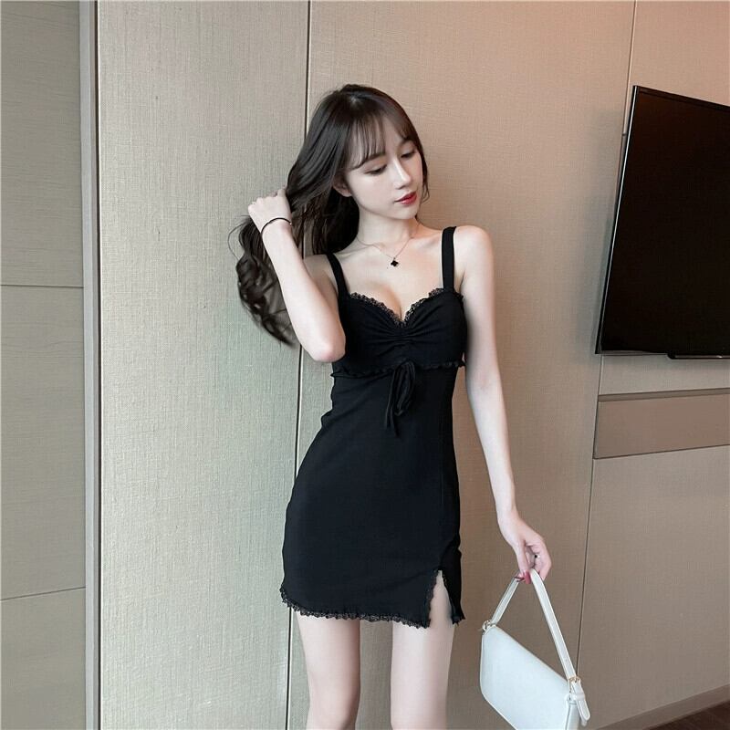 ナイトクラブの女性のナイトクラブのハイエンドの気質フランス菌セクシーなローカット深い V ネックサスペンダードレス Vネック yeyij77965731827