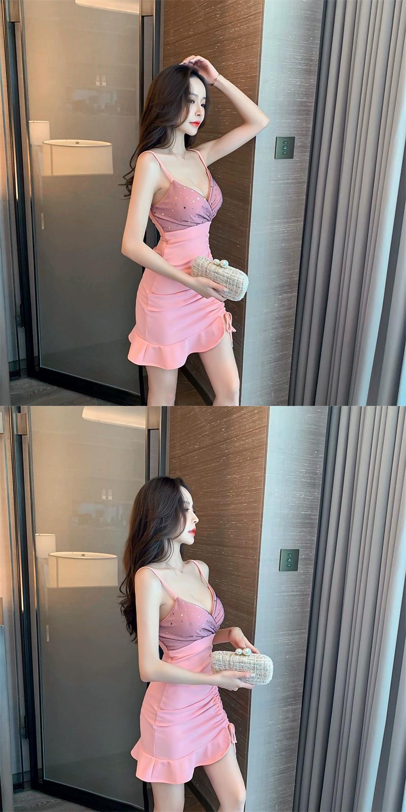ナイトクラブドレス女性のナイトクラブ作業服セクシーなローカットディープ V ネックヒップカバーショートフィッシュテールサスペンダースカート Vネック yeyij20987685078
