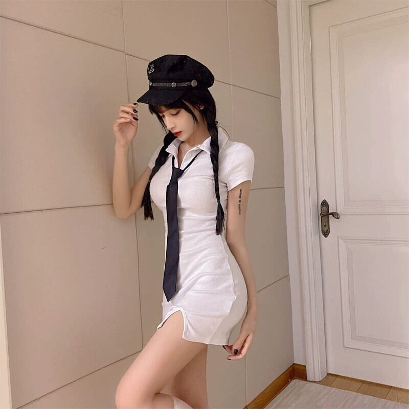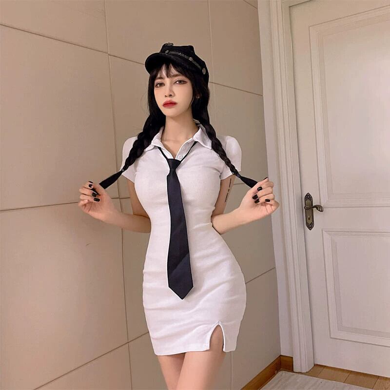 ナイトクラブの女性の作業服、作業服、気質とセクシーなネクタイ、ポロカラー、半袖ヒップドレス yeyij78939232858