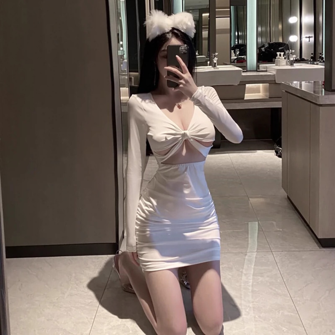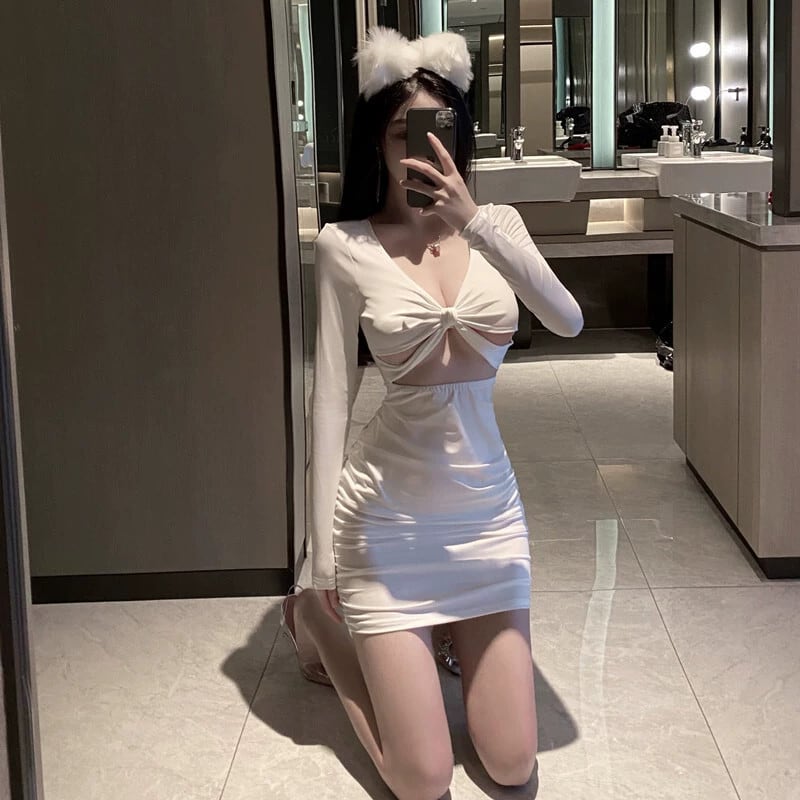 ナイトクラブの女性の秋と冬のセクシーな作業服ローカット深い V ネック中空長袖ヒップカバーボトリングドレス ロング オータム 秋物 ウィンター 冬物 Vネック yeyij22328006523