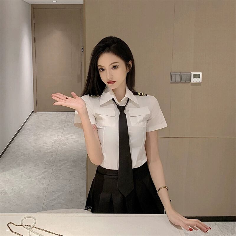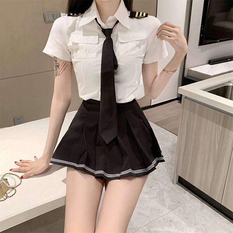 JKユニムスーツレディース夏カレッジスタイルネクタイ白シャツトップ+ハイウエストプリーツショートスカート2点セット ハイウェスト ホワイト サマー 夏物 yeyij67501099867