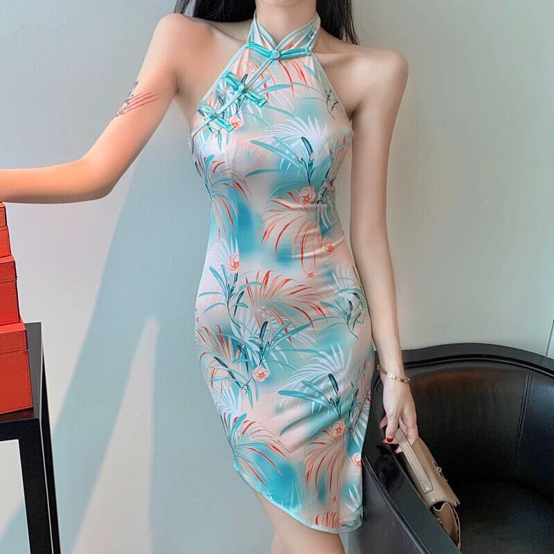 セクシーなチャイナドレスナイトクラブ国民的傾向改善されたノースリーブホルターネックスカートタイトなインターネット有名人の生放送の服女性アンカー yeyij44466565958
