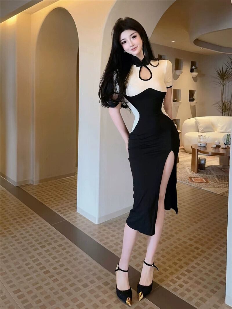 生放送服女性アンカー服ハイエンドスプライシング若いスタイルのセクシーな中空スリット改良されたチャイナドレス yeyij16353070098