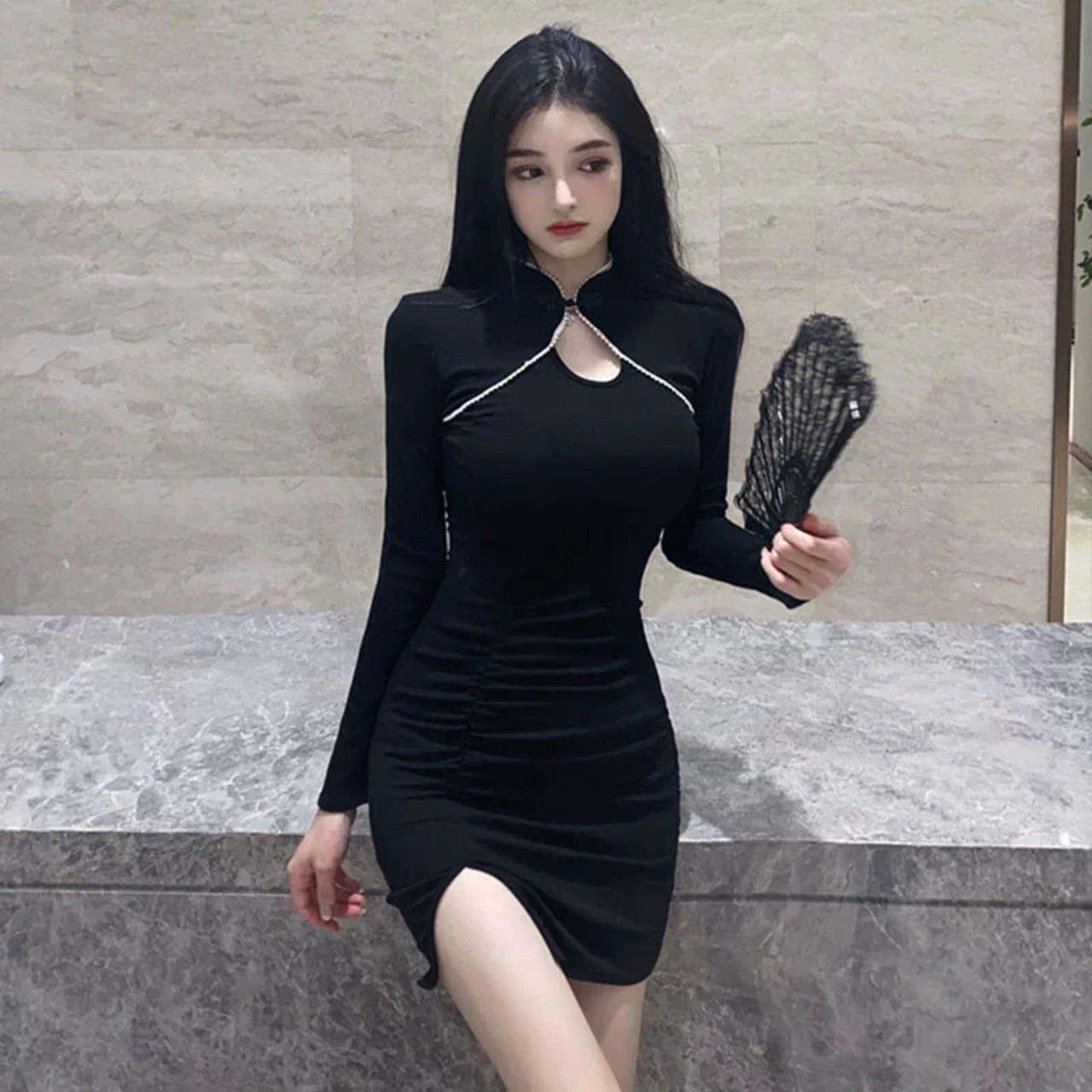 2023 春の新スタイルの女性アンカー若いセクシーなヒップカバースリットインナー底改良チャイナドレス スプリング 春物 yeyij52581132952
