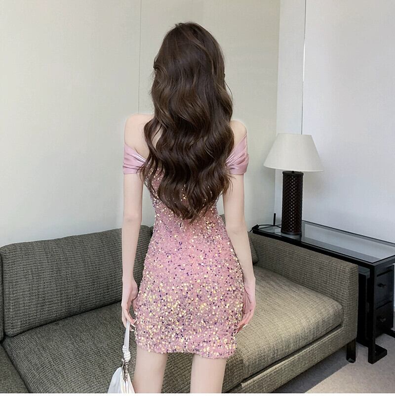 ピンクの誕生日ドレスの女性、ハイエンドの軽い豪華なニッチハイエンドのフランスのスパンコールのセクシーなヒップハグドレス yeyij1200339383