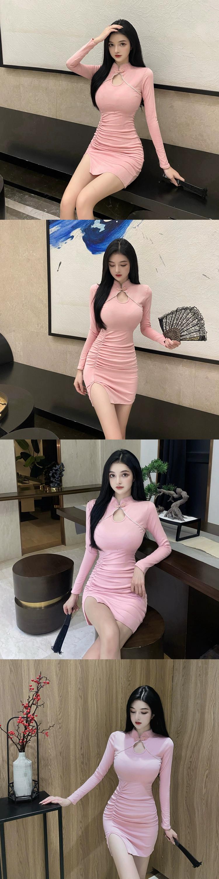 改良されたチャイナドレス 2023 春新作ドロップカラー若いセクシーなショートヒップカバースリットドレス スプリング 春物 yeyij55313130869
