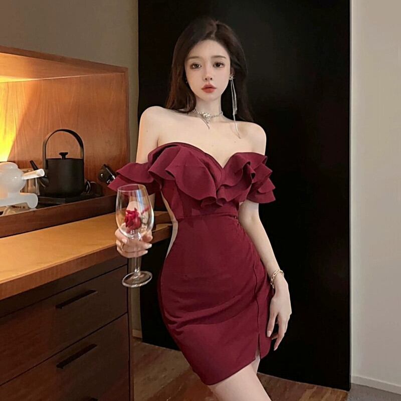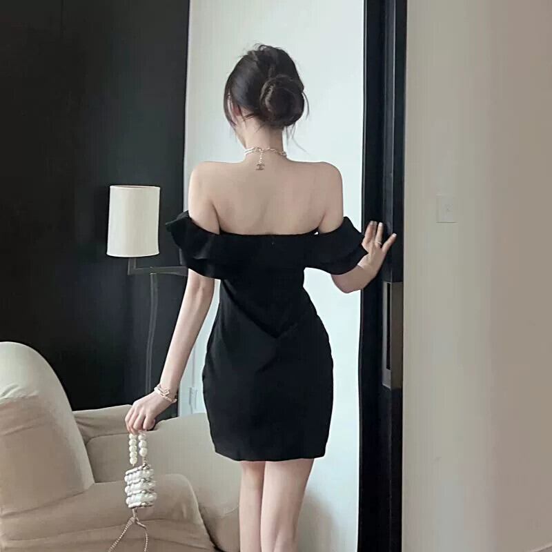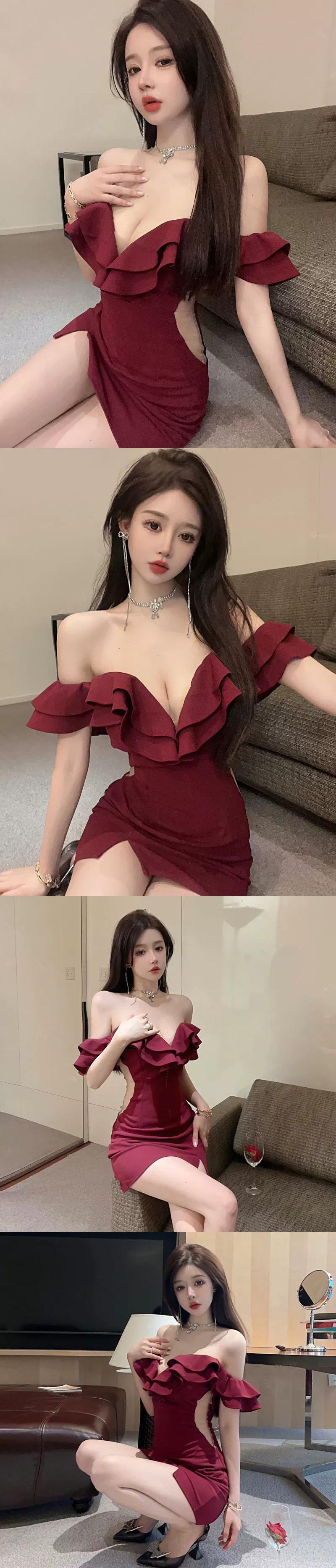 小さなドレスの女性フレンチハイエンドフリルナイトクラブセクシーなディープ V ネックワンショルダー中空チューブトップドレス Vネック yeyij50398667896
