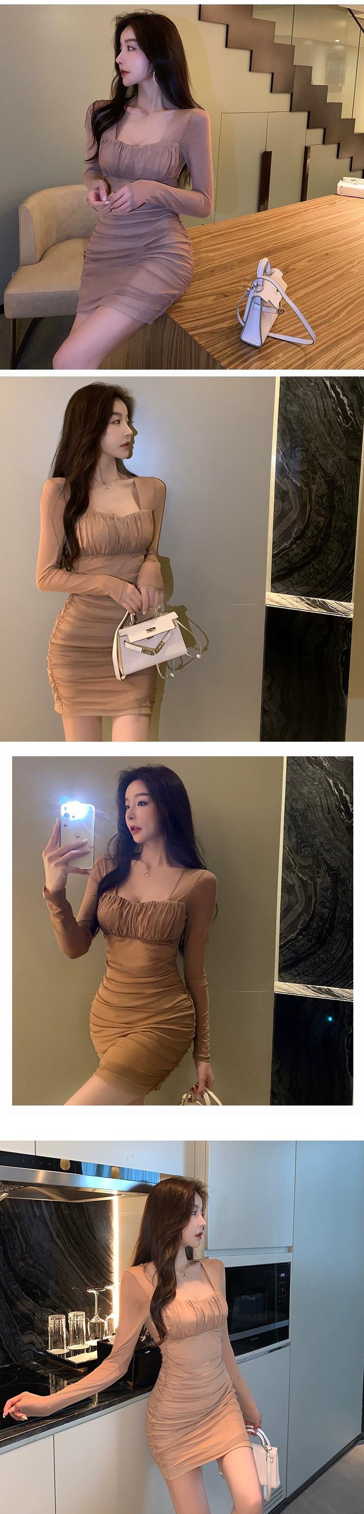 ナイトクラブの女性用ナイトクラブ作業服、セクシーなスクエアネックメッシュ長袖スリミングヒップハグドレス ロング スクウェア yeyij34160677585