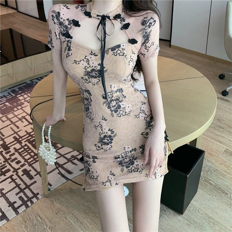 アンカー服夏フランスの若いセクシーな中空ショートレースチャイナドレス改良版ドレス サマー 夏物 yeyij20580197474