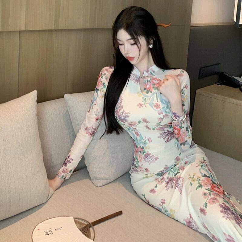 中国風のチャイナドレス新2023新しい若いスタイルのレトロな中国風のプリント改良されたミッドレングスドレス yeyij21358583122