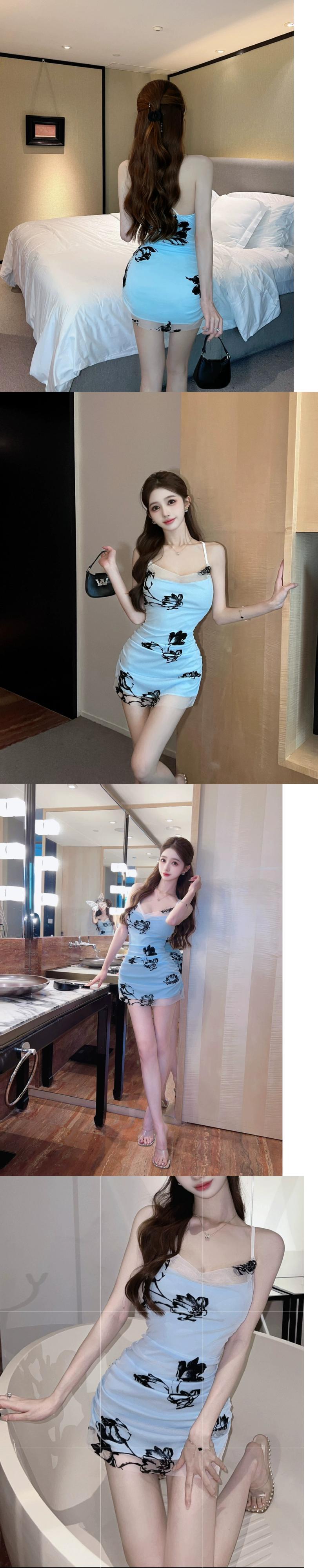 生放送の女性アンカーのポージェニックな服、高級フランスの純粋な欲望スタイル、甘くてスパイシーなセクシーなメッシュフェイクツーピースサスペンダードレス 大人ガーリー スウィート キュート カジュアル ピュア yeyij22530754323