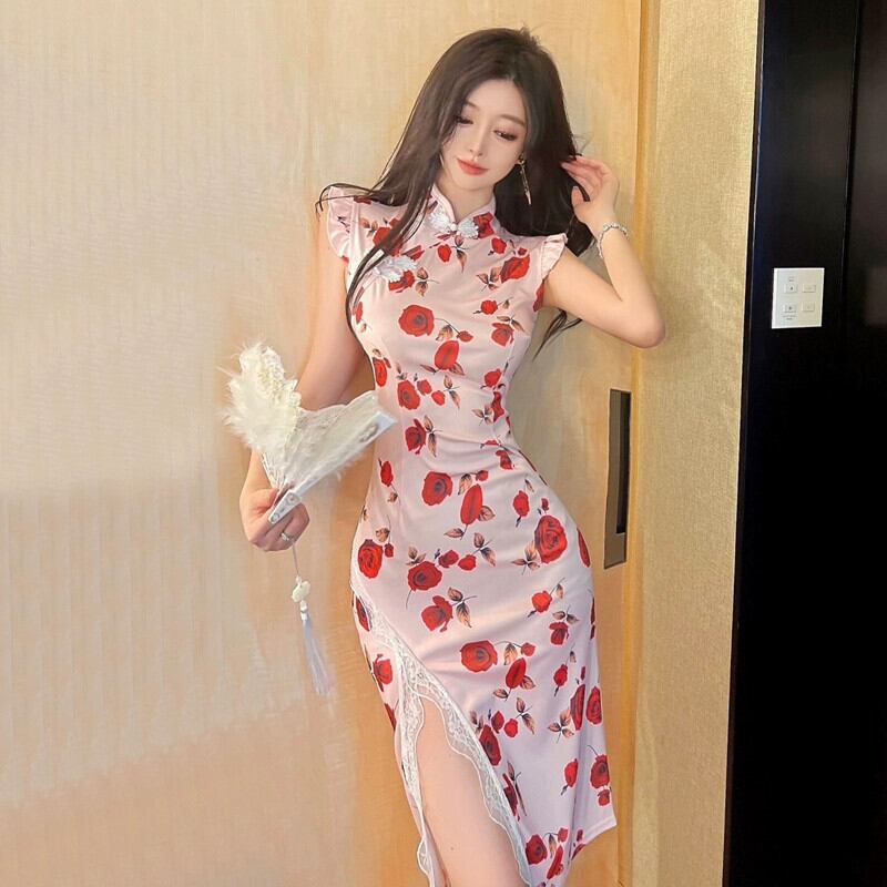 チャイナドレス改良された女性の2022年夏の新しいスタイルの若いスタイルのハイエンドのセクシーなノースリーブミッドレングスドレス サマー 夏物 yeyij96152326540